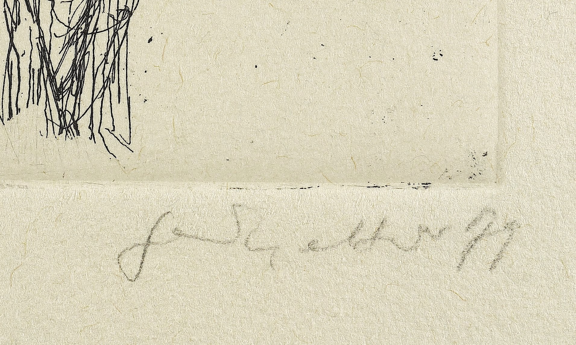 1979. Radierung / Strichätzung, in Schwarz, auf hellchamois Velin. – Originale Künstlergrafik, von Gerhard Kettner. – Auflage Exemplar Nr. 12/48. – 12,7 x 16,6 cm (Darstellung / Platte), 19 x 26 cm (Blatt).