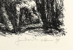 1978. Lithografie / Federlithografie, in Schwarz, auf hellgelbem Kupferdruckpapier. – Originale Künstlergrafik, von Gerhard Kettner. – Auflage Exemplar Nr. 66/175. – 23,5 x 42,0 cm (Darstellung), 45 x 64,5 cm (Blatt).
