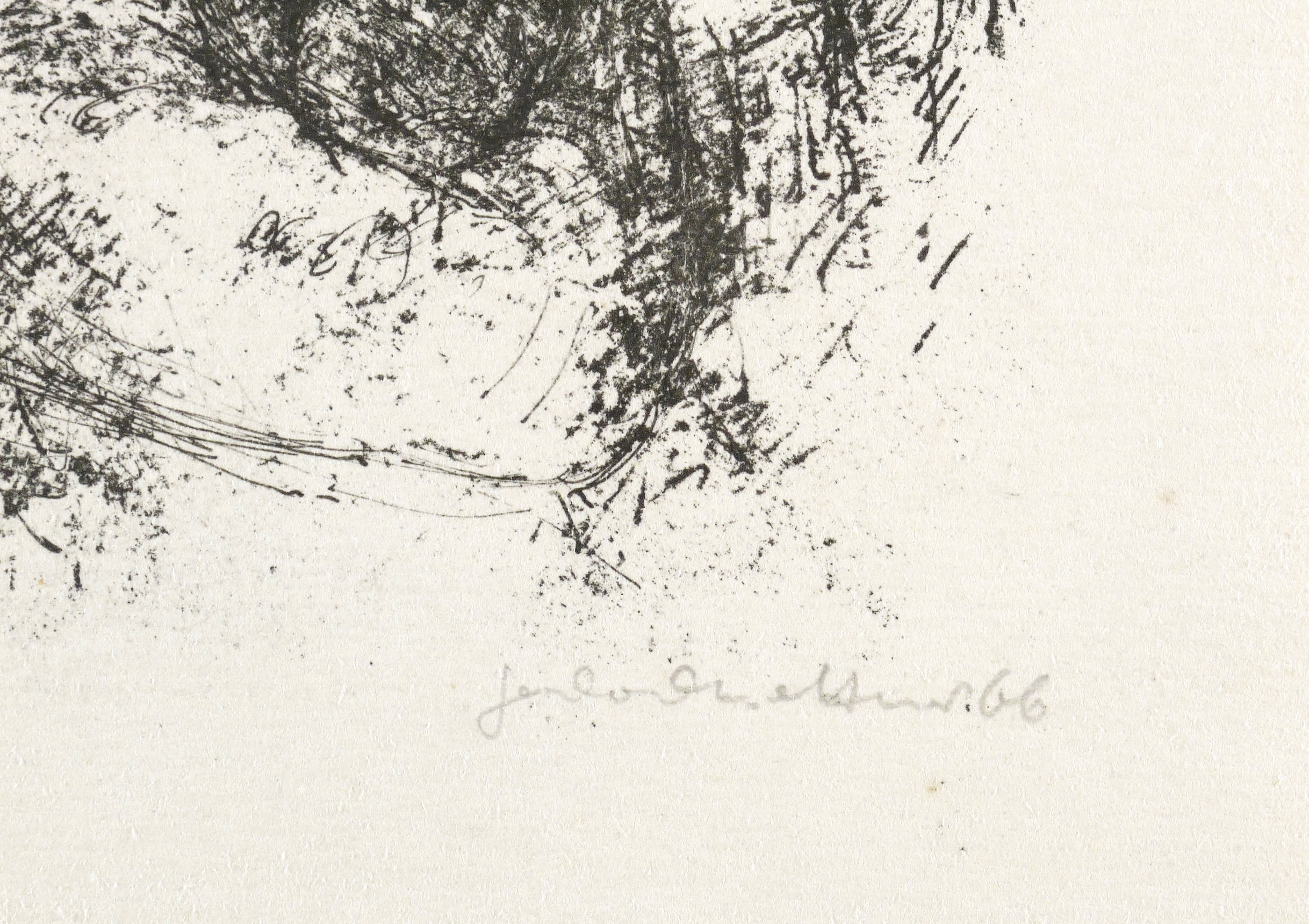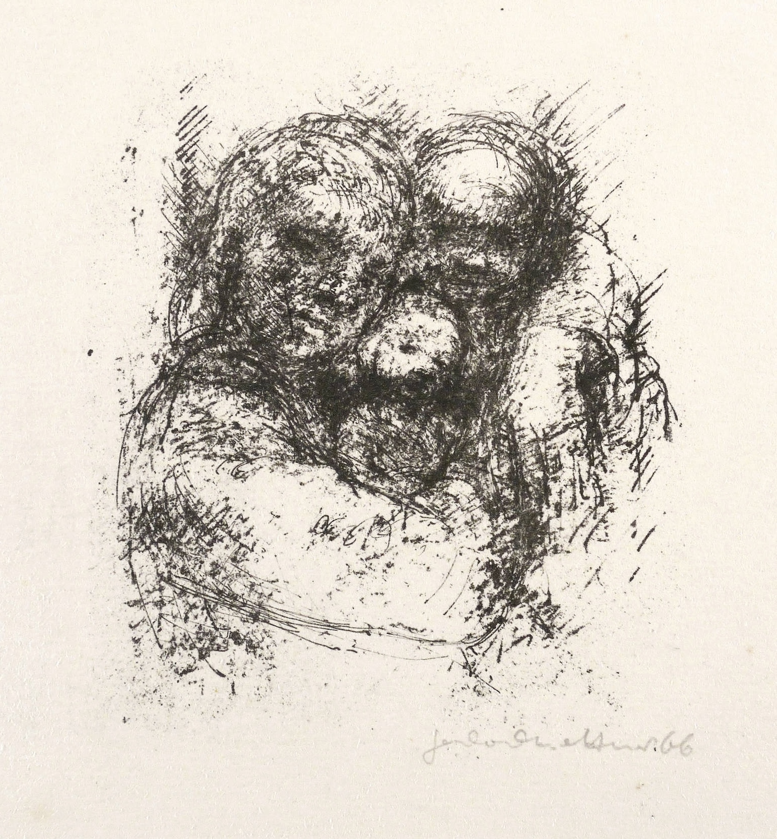 1966. Lithografie / Kreidelithografie, in Schwarz, auf hellchamois Velinkarton. – Originale Künstlergrafik, von Gerhard Kettner. – 10,0 x 9,0 cm (Darstellung / Druckbild), 14 x 14 cm (Blatt).