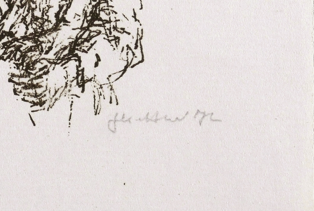 1972. Lithografie / Federlithografie, in Schwarz, auf hellgelbem Maschinenbütten. – Originale Künstlergrafik, von Gerhard Kettner. – 7,0 x 8,9 cm (Darstellung / Druckbild), 11 x 15 cm (Blatt).
