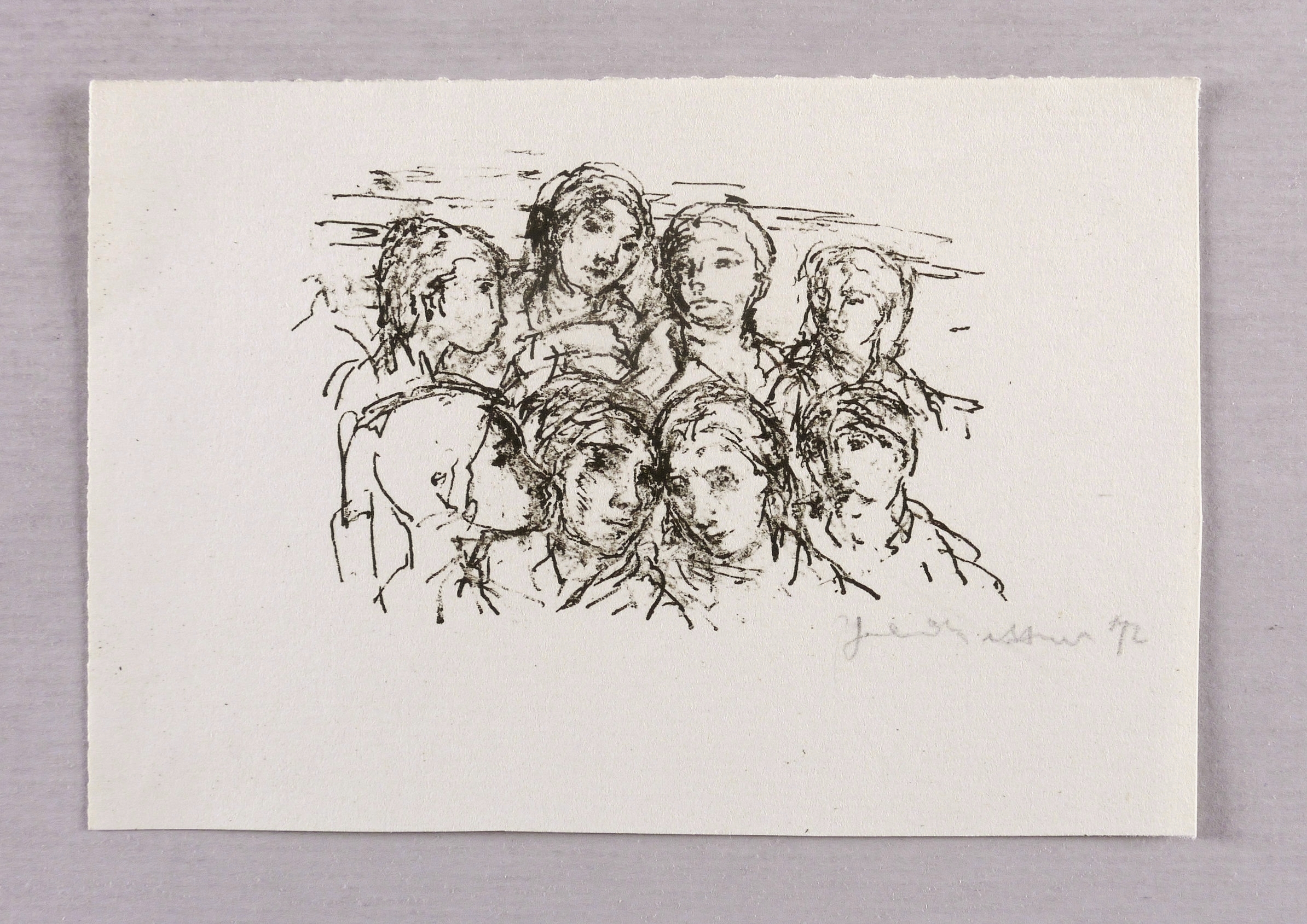 1972. Lithografie / Federlithografie, in Schwarz, auf hellgelbem Maschinenbütten. – Originale Künstlergrafik, von Gerhard Kettner. – 6,5 x 9,5 cm (Darstellung / Druckbild), 11 x 15 cm (Blatt).