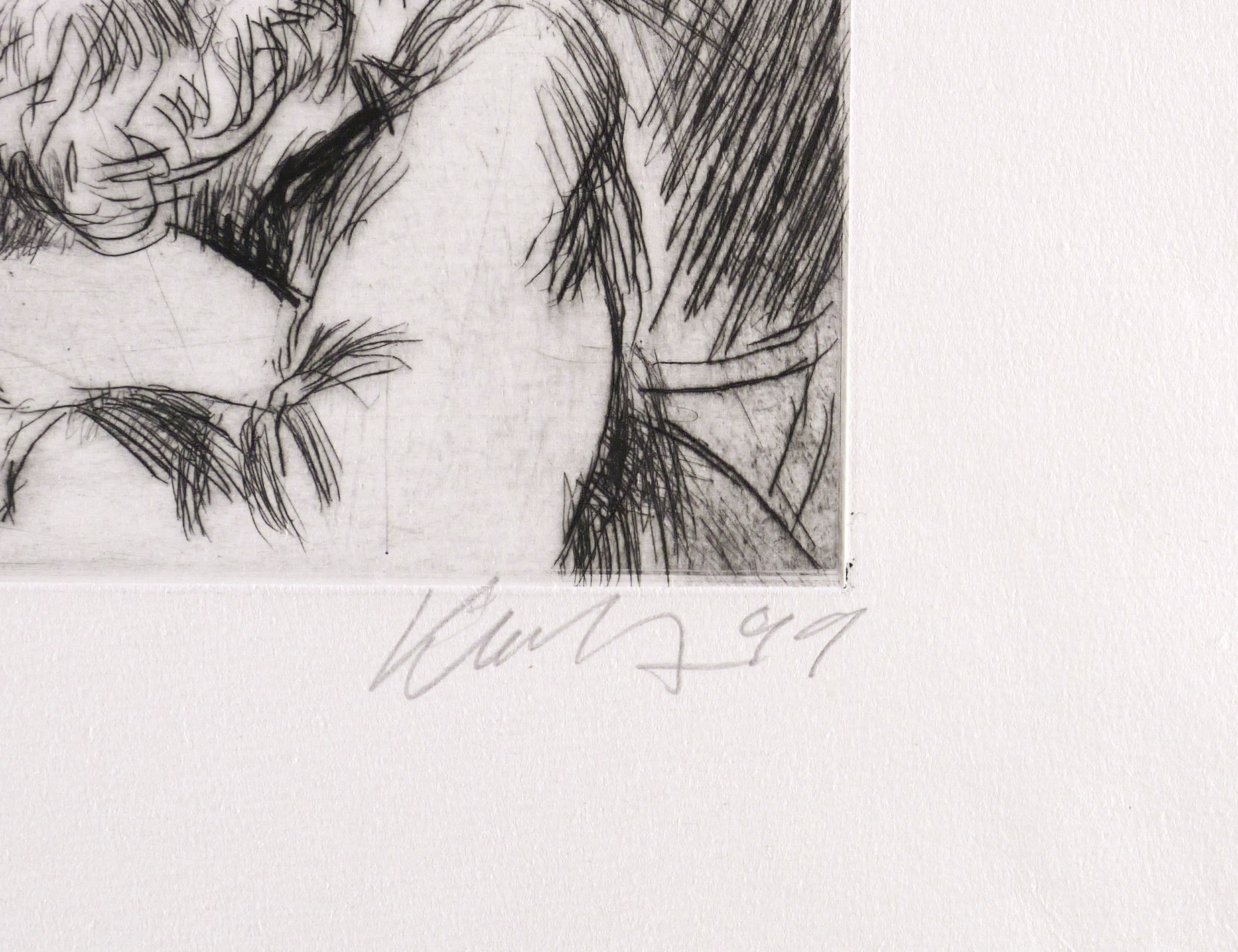 1994/1999. Radierung / Kaltnadel, in Schwarz, auf hellchamois Velinkarton. – Originale Künstlergrafik, von Siegfried Klotz. – Künstlerexemplar (e.a.). – 24,8 x 29,6 cm (Darstellung / Platte), 40 x 57 cm (Blatt).