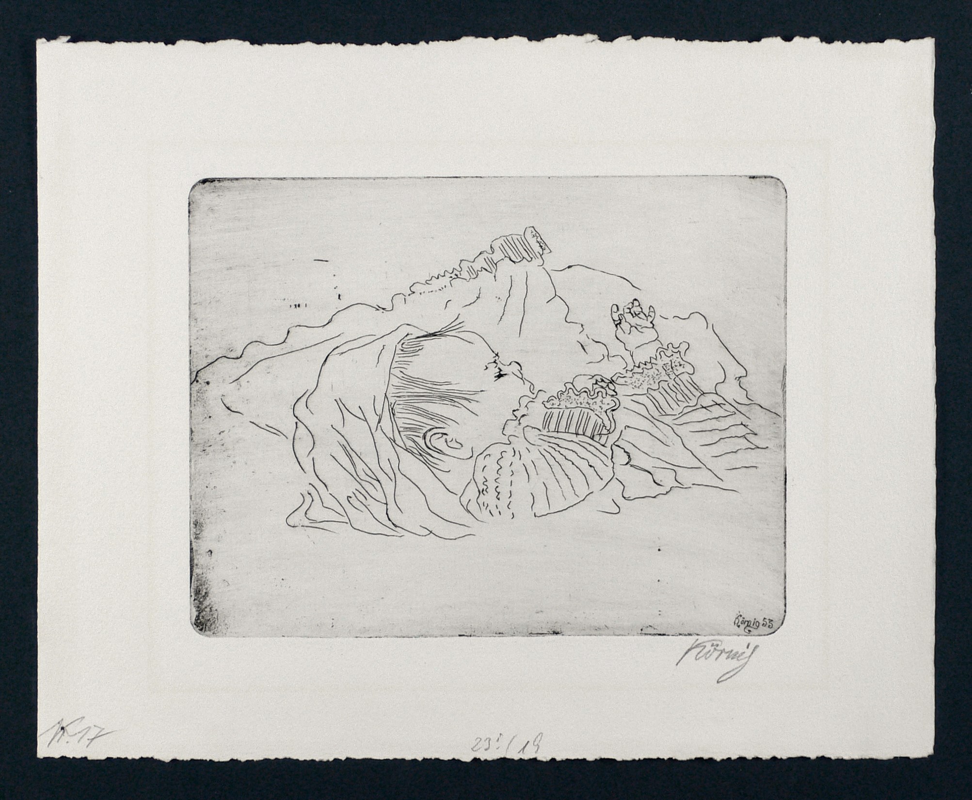 Rechts unten in Bleistift signiert. Am unteren Blattrand Auflagenbezeichnung. Links nummeriert ″Nr. 17″. In der Platte rechts unten signiert und datiert. – Blattrand etwas angeschmutzt. Insgesamt guter Zustand.