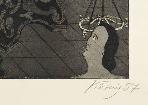 WVZ 202. – Rechts unten in Bleistift signiert und datiert: ″Körnig 57″. In der Blattecke links unten eigenhändiger Titel: ″Math-Phys. Salon″. Rechts Werk- und Exemplarnummer: ″202/5″. – Tadelloses unbeschnittenes Exemplar. Sehr guter Zustand.