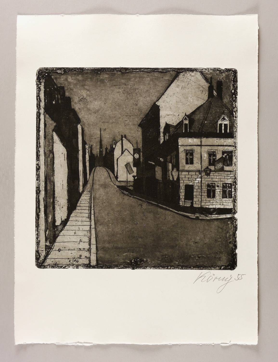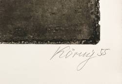 1955. Radierung / Aquatinta & Strichätzung, in Schwarz, auf schwerem hellchamois Hahnemühle. – Originale Künstlergrafik, von Hans Körnig. – Auflage Exemplar Nr. 48/50. – 32,7 x 32,8 cm (Darstellung / Platte), 54 x 40 cm (Blatt).