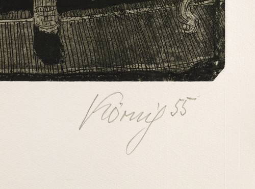 1955. Radierung / Aquatinta & Strichätzung, in Schwarz, auf schwerem hellchamois Hahnemühle. – Originale Künstlergrafik, von Hans Körnig. – Auflage Exemplar Nr. 48/50. – 32,7 x 32,8 cm (Darstellung / Platte), 54 x 40 cm (Blatt).
