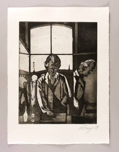 1954. Radierung / Aquatinta & Strichätzung, in Schwarz, auf schwerem hellchamois Hahnemühle. – Originale Künstlergrafik, von Hans Körnig. – Auflage Exemplar Nr. 48/50. – 39,9 x 30,7 cm (Darstellung / Platte), 54 x 40 cm (Blatt).
