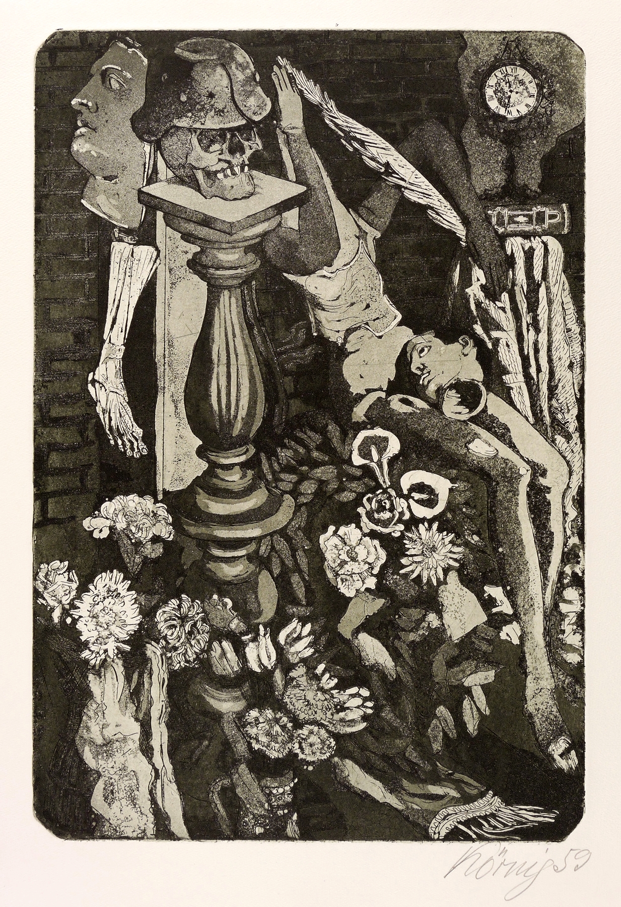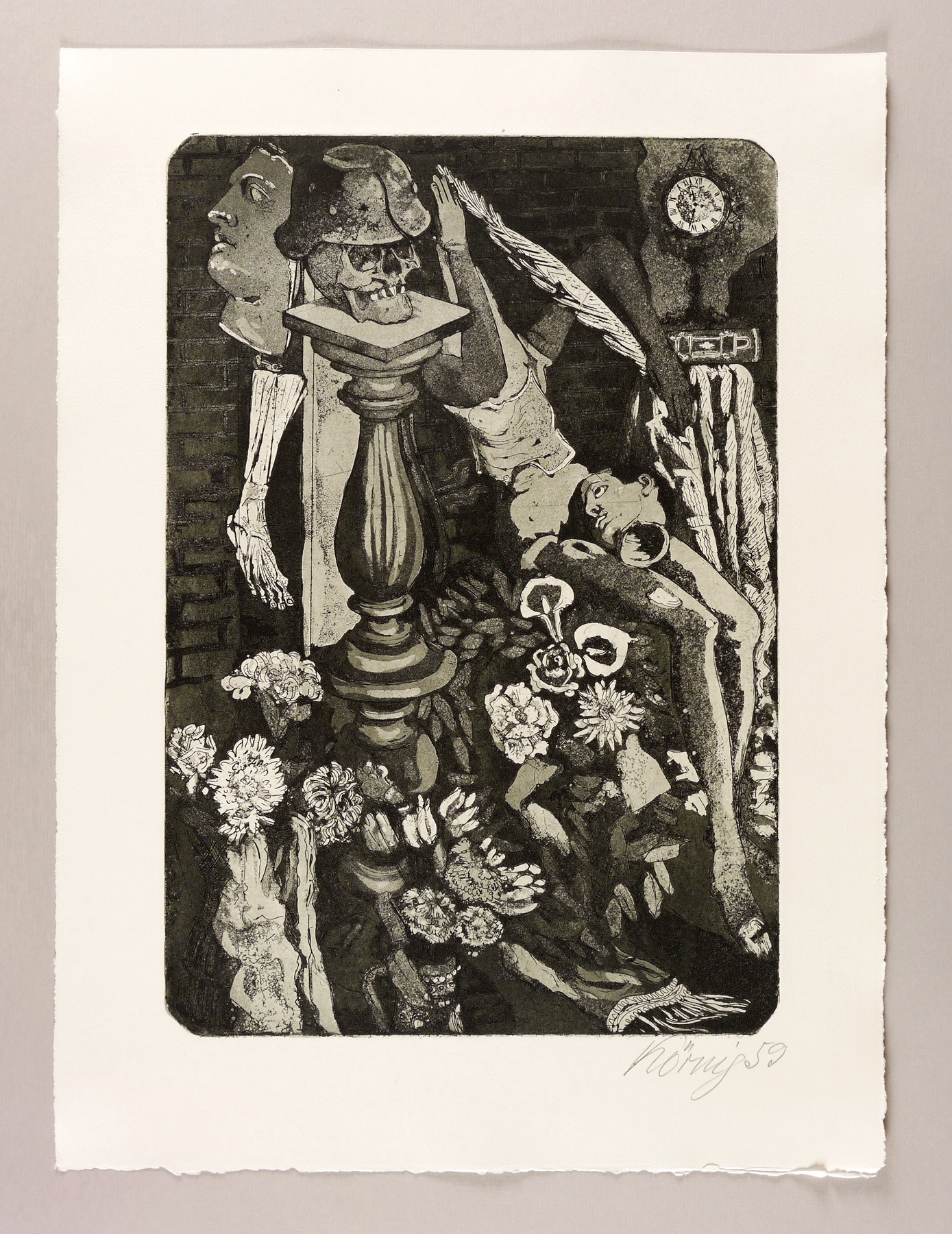 1959. Radierung / Aquatinta & Strichätzung, in Schwarz, auf schwerem chamois Hahnemühle. – Originale Künstlergrafik, von Hans Körnig. – Auflage Exemplar Nr. 48/50. – 42,7 x 29,1 cm (Darstellung / Platte), 54 x 40 cm (Blatt).