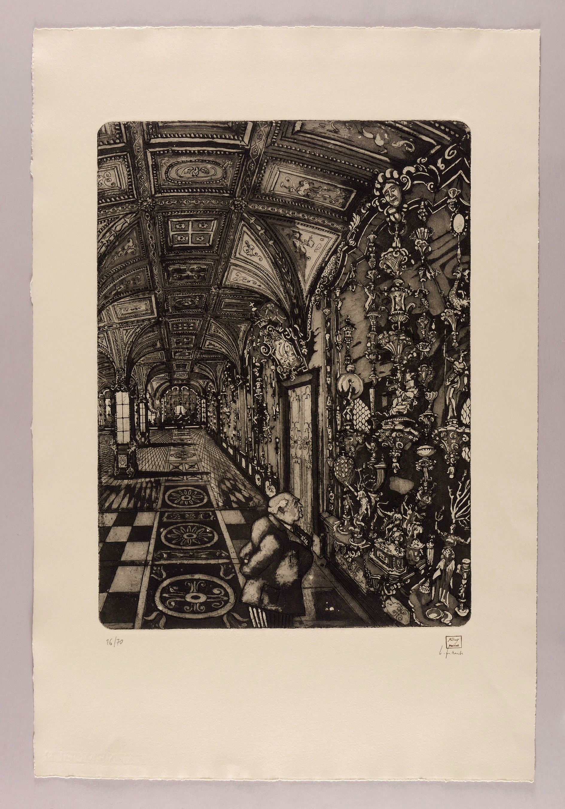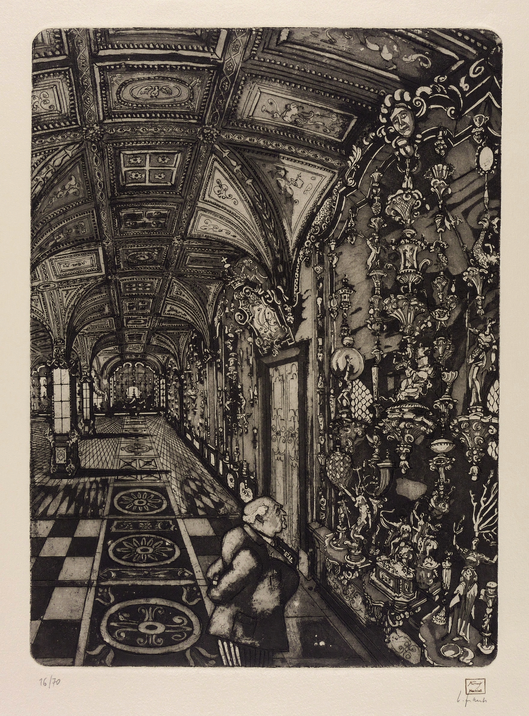 1960. Radierung / Aquatinta & Strichätzung, in Schwarz, auf kräftigem gelbem Hahnemühle. – Originale Künstlergrafik, von Hans Körnig. – Auflage Exemplar Nr. 16/70. – 53,3 x 39,2 cm (Darstellung / Platte), 79 x 53 cm (Blatt).