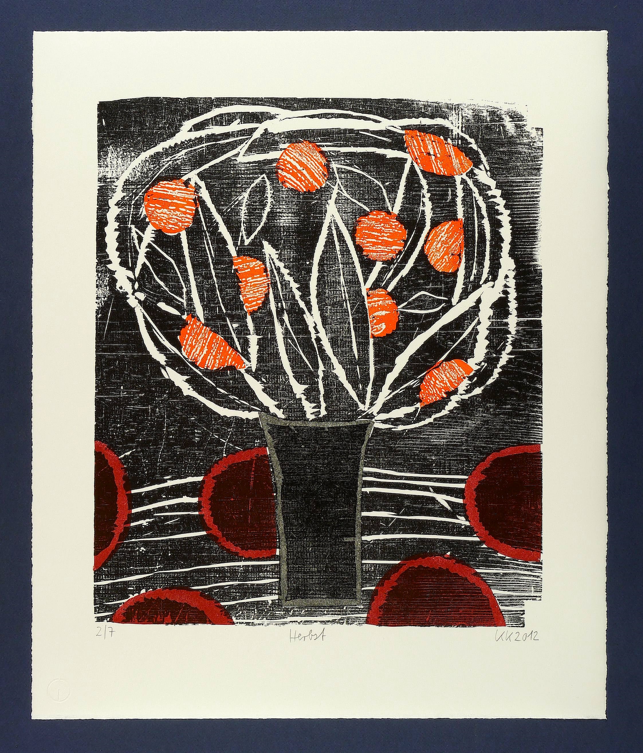 2012. Farbholzschnitt, in 4 Farben, auf Bütten. – Originale Künstlergrafik, von Katharina Kretschmer. – Auflage Exemplar Nr. 2/7. – 42,2 x 35,9 cm (Darstellung / Druckstock), 55 x 46 cm (Blatt).