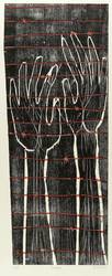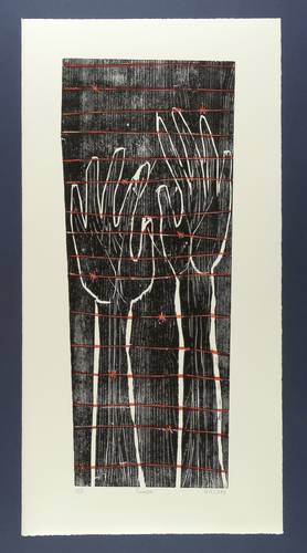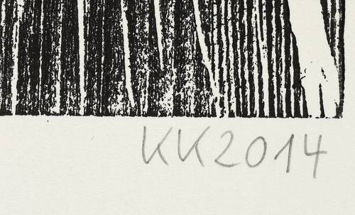 2014. Farbholzschnitt, in zwei Farben, auf Büttenpapier. – Originale Künstlergrafik, von Katharina Kretschmer. – Auflage Exemplar Nr. 1/5. – 73,0 x 26,7 cm (Darstellung / Druckstock), 88 x 44 cm (Blatt).
