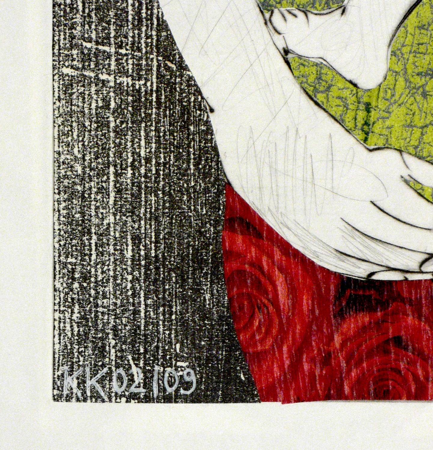 Links unten in der Darstellung monogrammiert und datiert. Verso in Bleistift signiert, datiert und betitelt. – Katharina Kretschmer fertigt ihre Collagen unter Verwendung unterschiedlich bearbeiteter Materialien, wie Dekor-Papieren, eigenen Handzeichnungen sowie eigenen fragmentierten Kaltnadelradierungen und Holzschnitten. – Tadelloser Zustand.