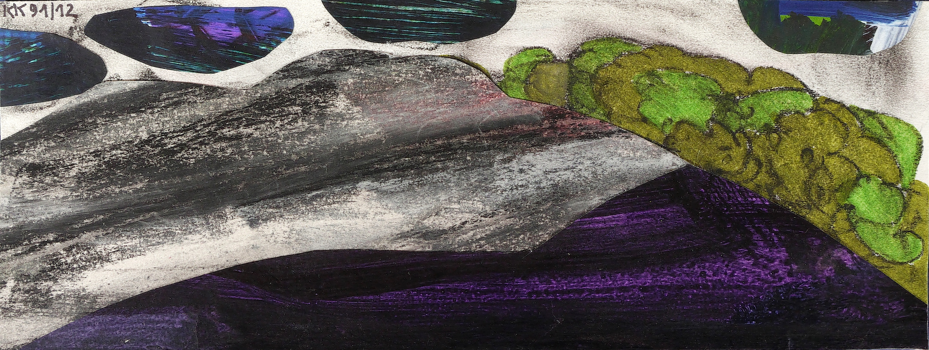 1991/2012. Collage / Papiercollage & Mischtechnik, auf Karton. – Originale Künstlergrafik, von Katharina Kretschmer. – Unikat. – 9,5 x 24,5 cm (Darstellung / Blatt).