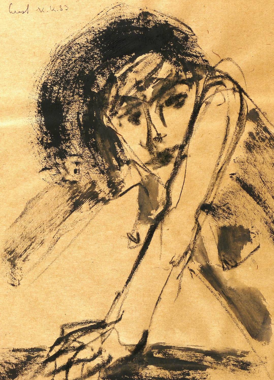 1993. Mischtechnik / Kohle & Tempera, auf Karton. – Originale Künstlergrafik, von Katharina Kretschmer. – Unikat. – 24,0 x 17,5 cm (Darstellung / Blatt).