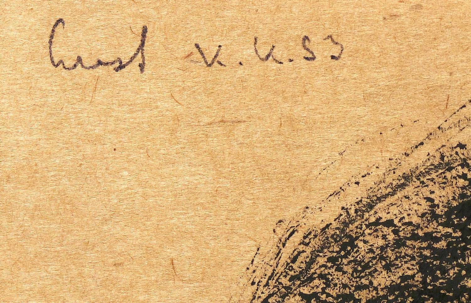 Links oben monogrammiert, datiert und betitelt. Verso in Kugelschreiber signiert, datiert und betitelt. – Papier durchgehend leicht wellig. Sonst guter Zustand.