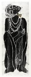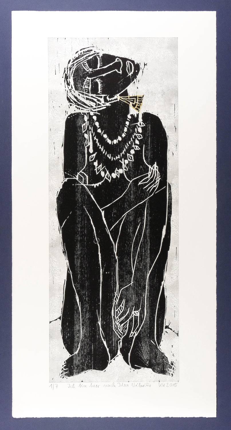 2015. Farbholzschnitt, mit Materialdruck, in 2 Farben, auf Velin. – Originale Künstlergrafik, von Katharina Kretschmer. – Auflage Exemplar Nr. 1/7. – 75,8 x 28,6 cm (Darstellung / Druckstock), 89,3 x 45,0 cm (Blatt).