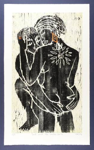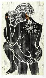 2016. Farbholzschnitt, mit Materialdruck, in 3 Farben, auf Velin. – Originale Künstlergrafik, von Katharina Kretschmer. – Auflage Exemplar Nr. 1/7. – 70,0 x 41,0 cm (Darstellung / Druckstock), 82,2 x 50,2 cm (Blatt).