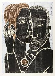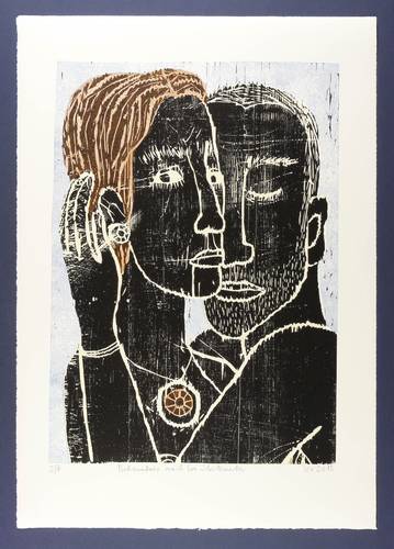 2015. Farbholzschnitt, mit Materialdruck, in 4 Farben, auf weißem Velin. – Originale Künstlergrafik, von Katharina Kretschmer. – Auflage Exemplar Nr. 2/7. – 59,8 x 42,8 cm (Darstellung / Druckstock), 76,5 x 53,5 cm (Blatt).