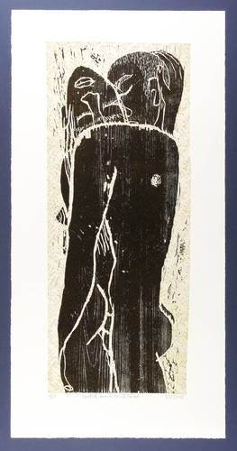 2015. Holzschnitt, mit Materialdruck, in zwei Farben. – Originale Künstlergrafik, von Katharina Kretschmer. – Auflage Exemplar Nr. 1/7. – 73,8 x 30,0 cm (Darstellung / Druckstock), 90,0 x 45,0 cm (Blatt).