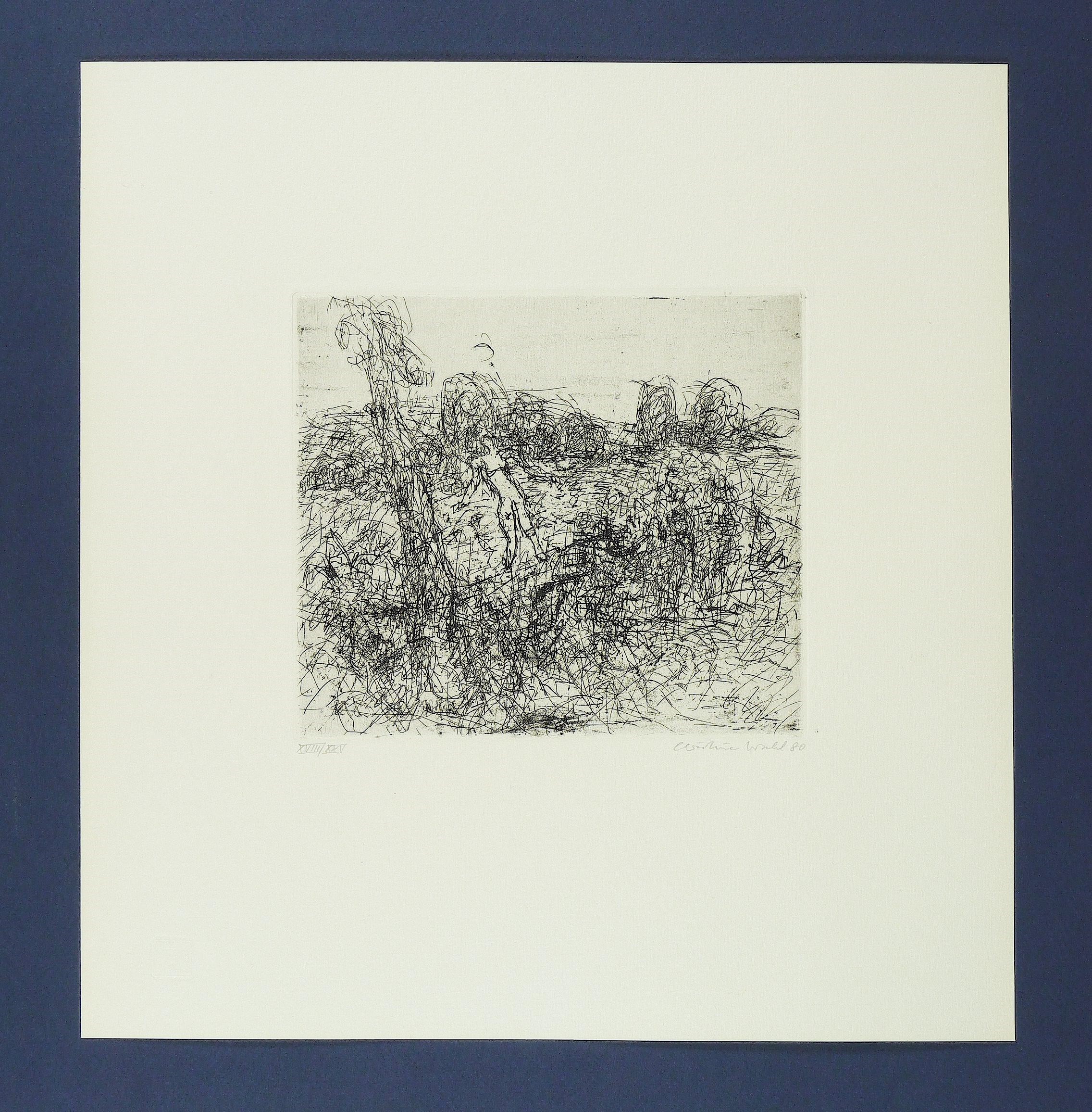 Rechts unten in Bleistift signiert und datiert. Links Auflagenbezeichnung. Prägestempel der Grafik-Edition. – Abzug der schon 1968 geschaffenen Platte von 1980 für die Grafik-Edition, Berlin. – Sehr schön erhalten.