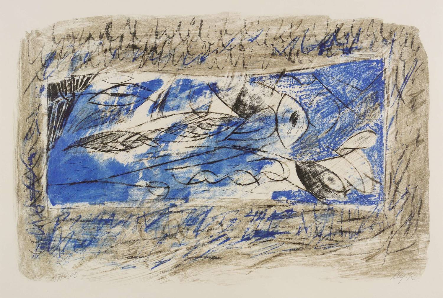 1992. Farblithografie / Pinsel- & Kreidelithografie. – Originale Künstlergrafik, von Olaf Wegewitz. – Auflage Exemplar Nr. 17/300. – 34,5 x 52,0 cm (Darstellung), 42 x 59 cm (Blatt).