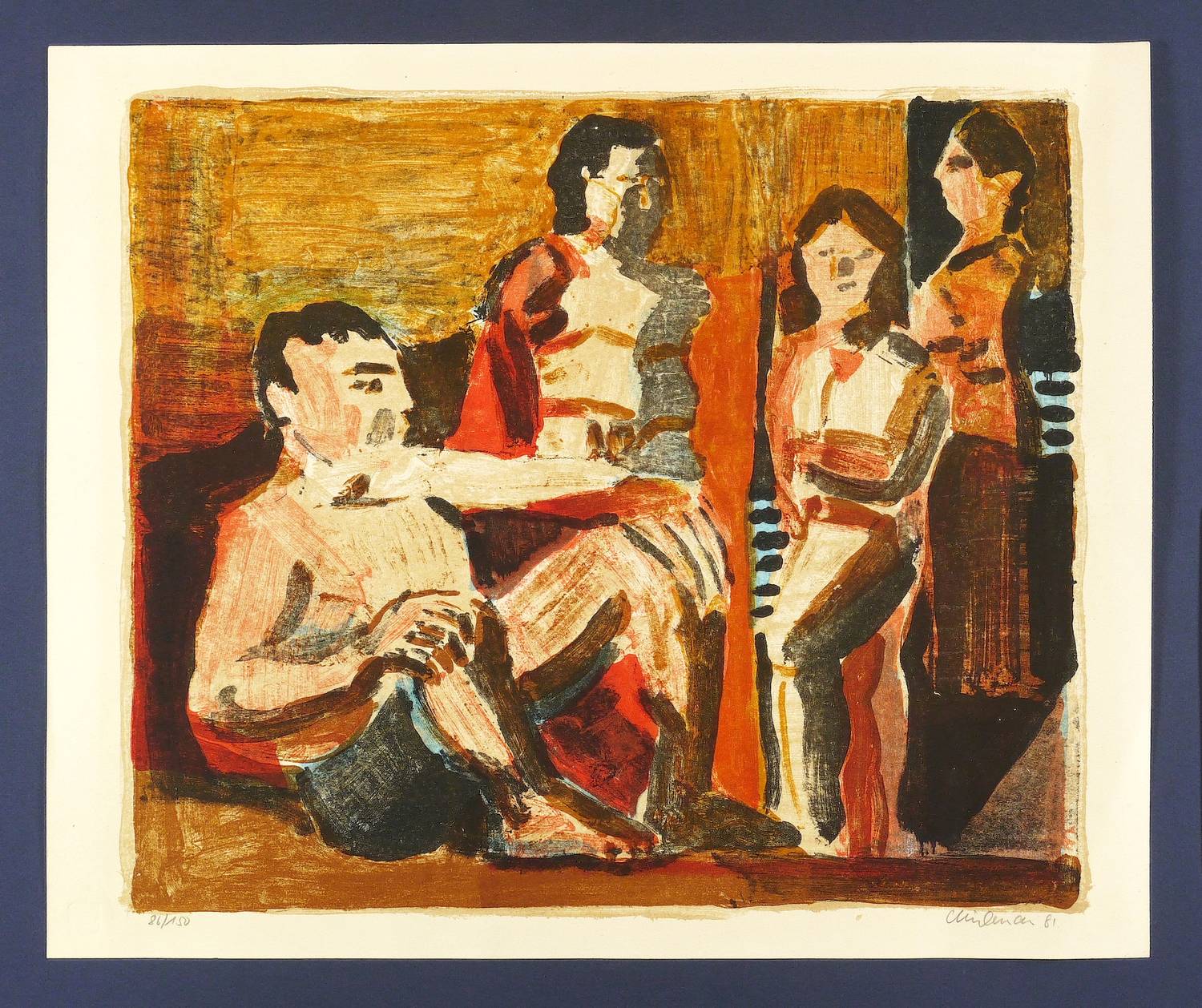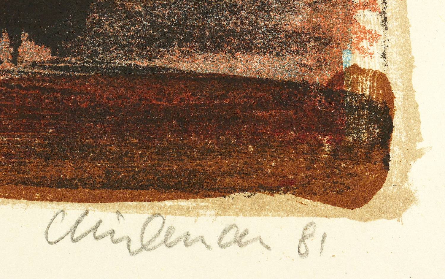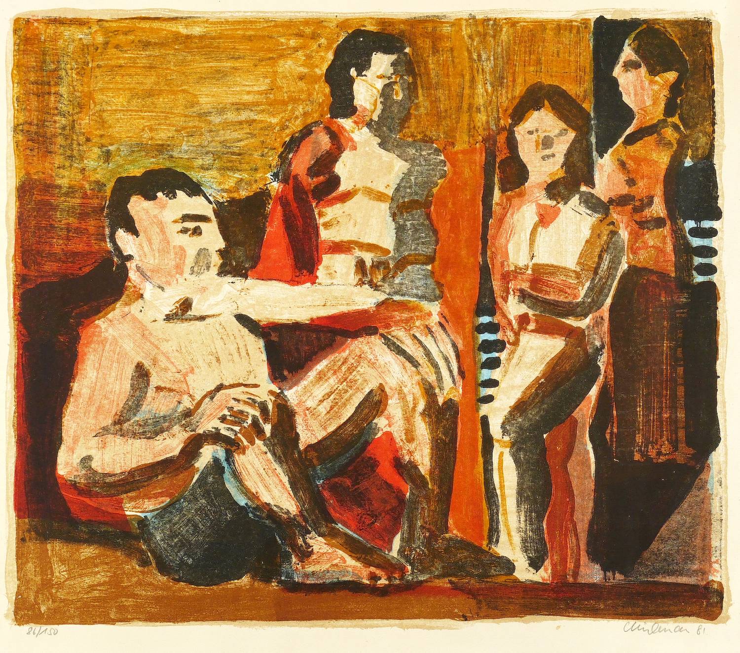 1981. Farblithografie / Pinsellithografie, in 5 Farben, auf hellchamois Velinkarton. – Originale Künstlergrafik, von Rolf Lindemann. – Auflage Exemplar Nr. 86/150. – 43,5 x 51,0 cm (Darstellung / Druckbild), 48,5 x 58 cm (Blatt).