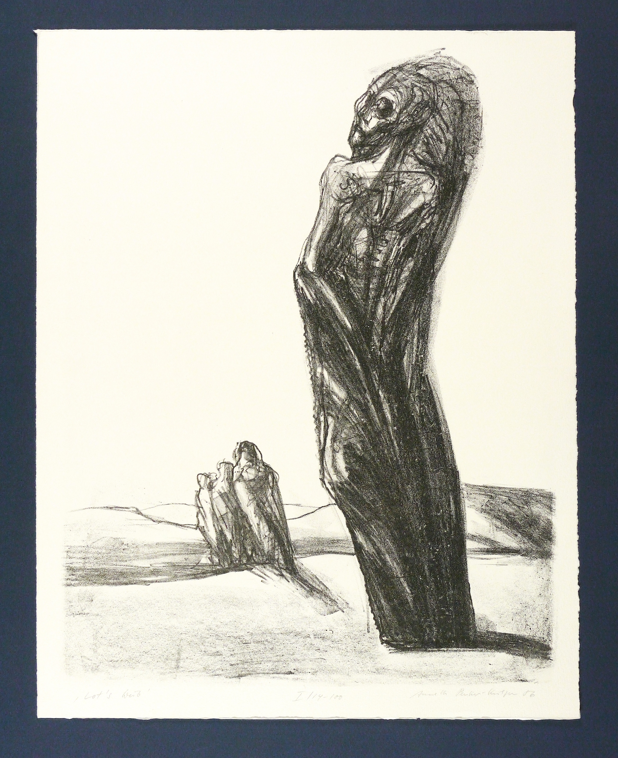 1986. Lithografie / Kreidelithografie, in Schwarz, auf Maschinenbütten. – Originale Künstlergrafik, von Annette Peuker-Krisper. – Auflage Exemplar Nr. 14/100. – 46,5 x 36,0 cm (Darstellung), 50 x 39,5 cm (Blatt).