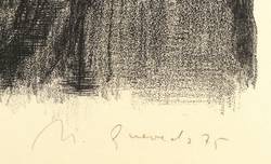 1975. Lithografie / Kreidelithografie, partiell geschabt, in Schwarz, auf gelbem Velin. – Originale Künstlergrafik, von Nuria Quevedo. – Auflage Exemplar Nr. 141/150. – 28,0 x 40,0 cm (Darstellung / Druckbild), 34 x 48 cm (Blatt).