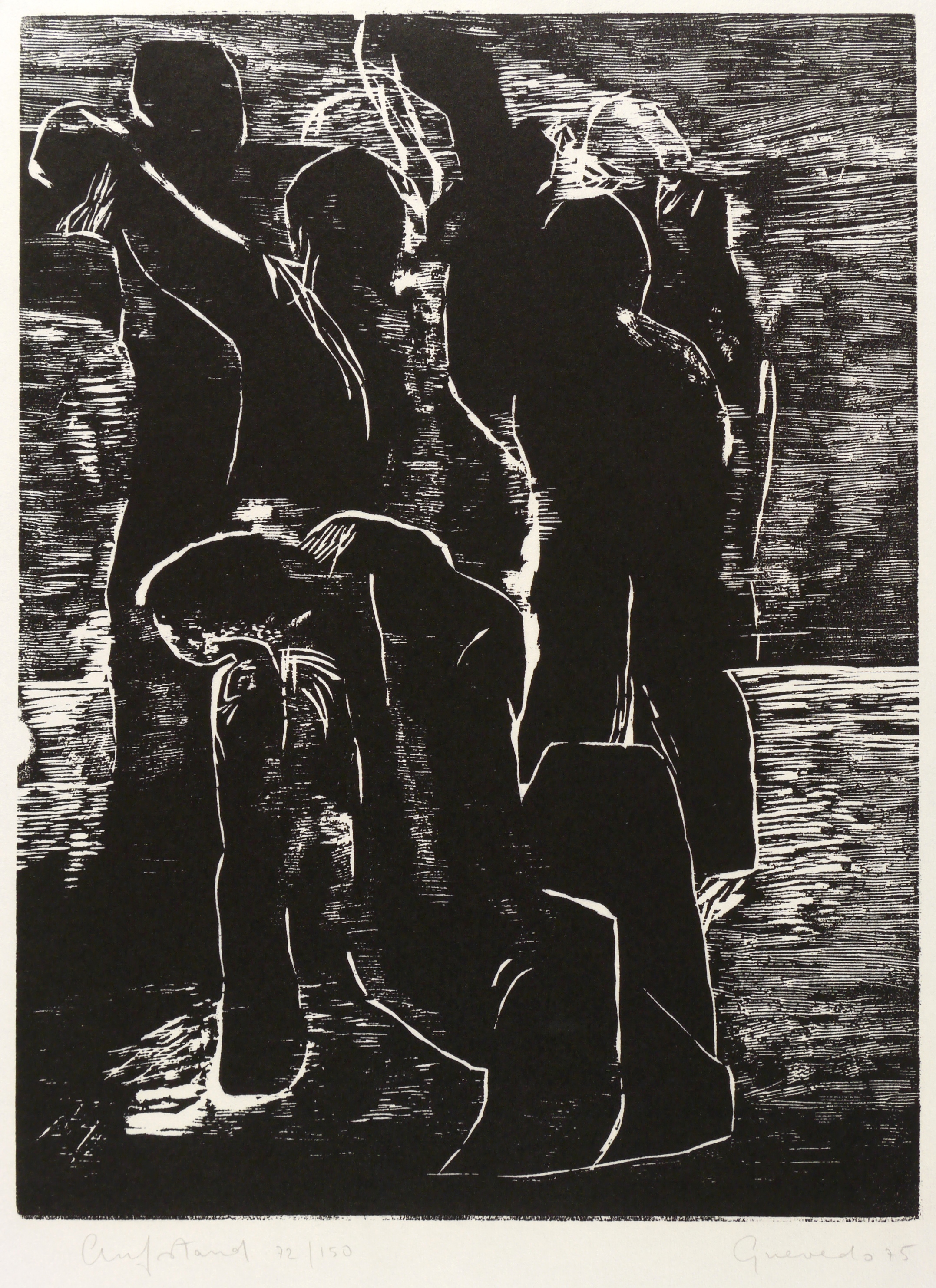 1974. Holzschnitt, in Schwarz, auf hellchamois Velin. – Originale Künstlergrafik, von Nuria Quevedo. – Auflage Exemplar Nr. 72/150. – 40,0 x 29,7 cm (Darstellung / Druckstock), 46 x 34 cm (Blatt).