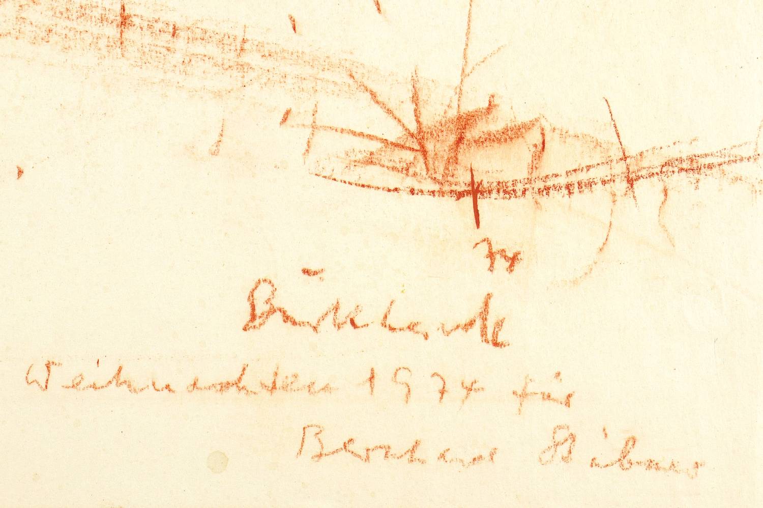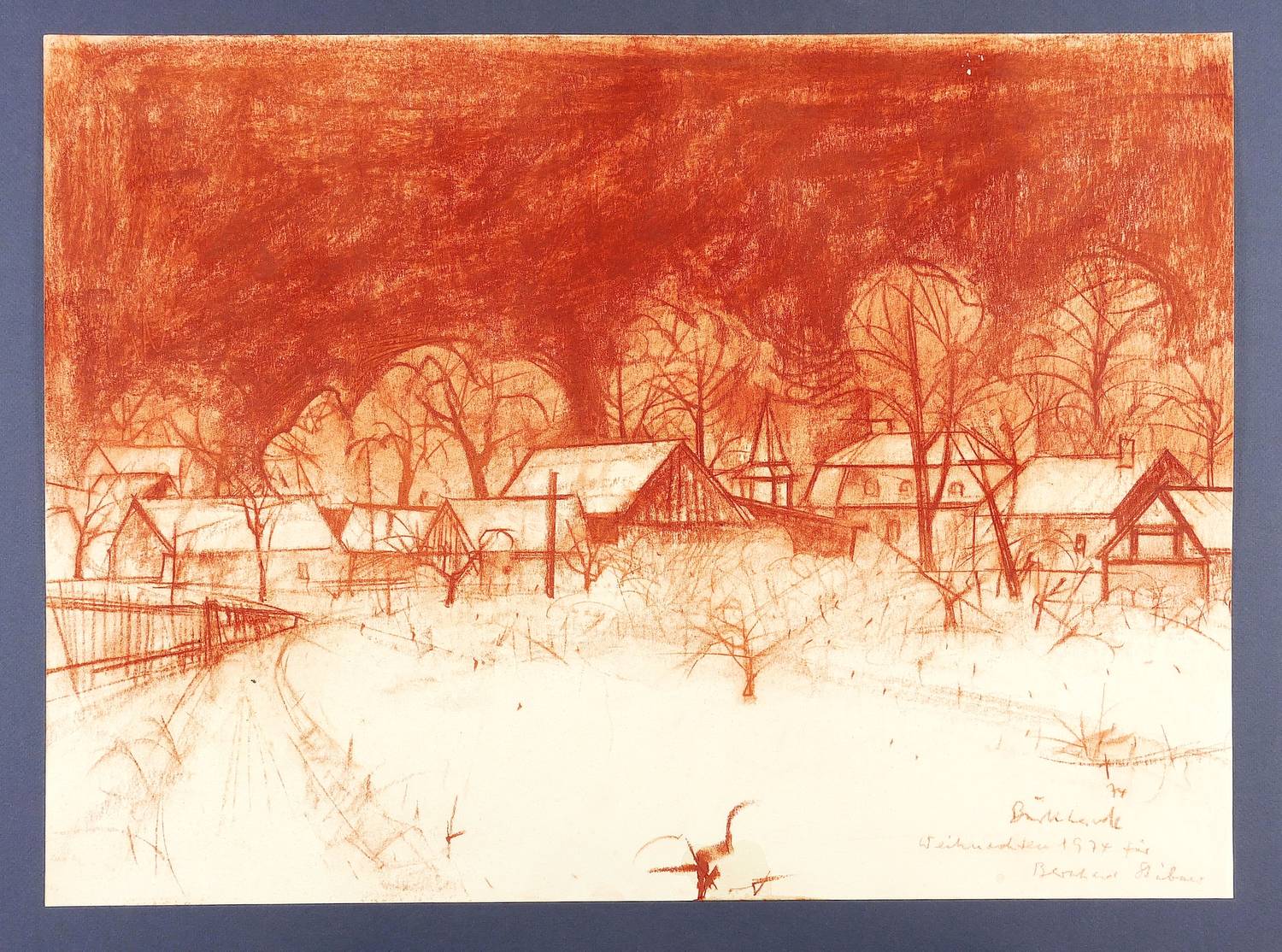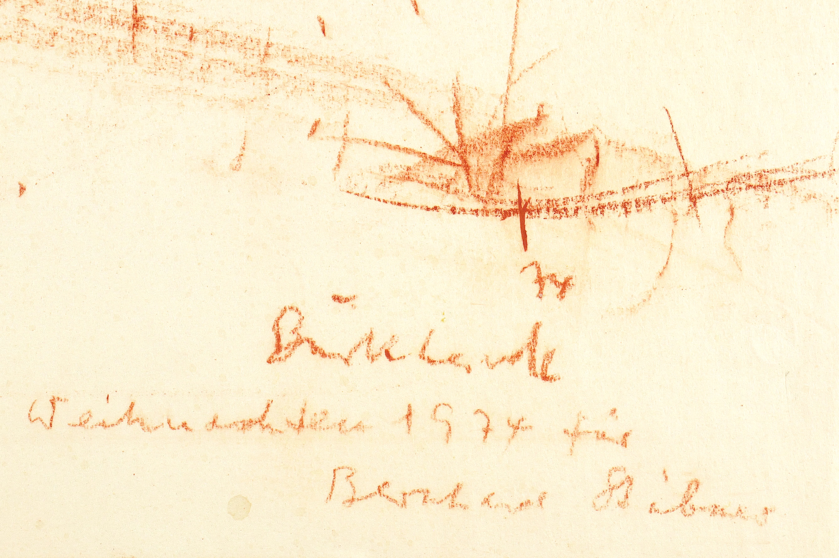 Rechts unten in Fettkreide datiert und signiert. Darunter Widmung für Bernhard Stübner (Kunsthändler in Berlin). – Sehr guter Zustand.