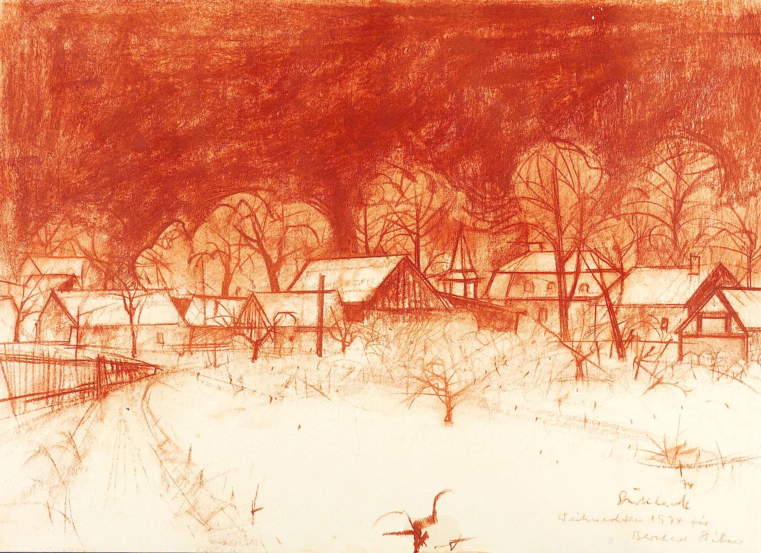 1974. Zeichnung / Rötelzeichnung, auf Zeichenkarton. – Originale Künstlergrafik, von Heinrich Burkhardt. – 41,8 x 57,1 cm (Darstellung / Blatt).