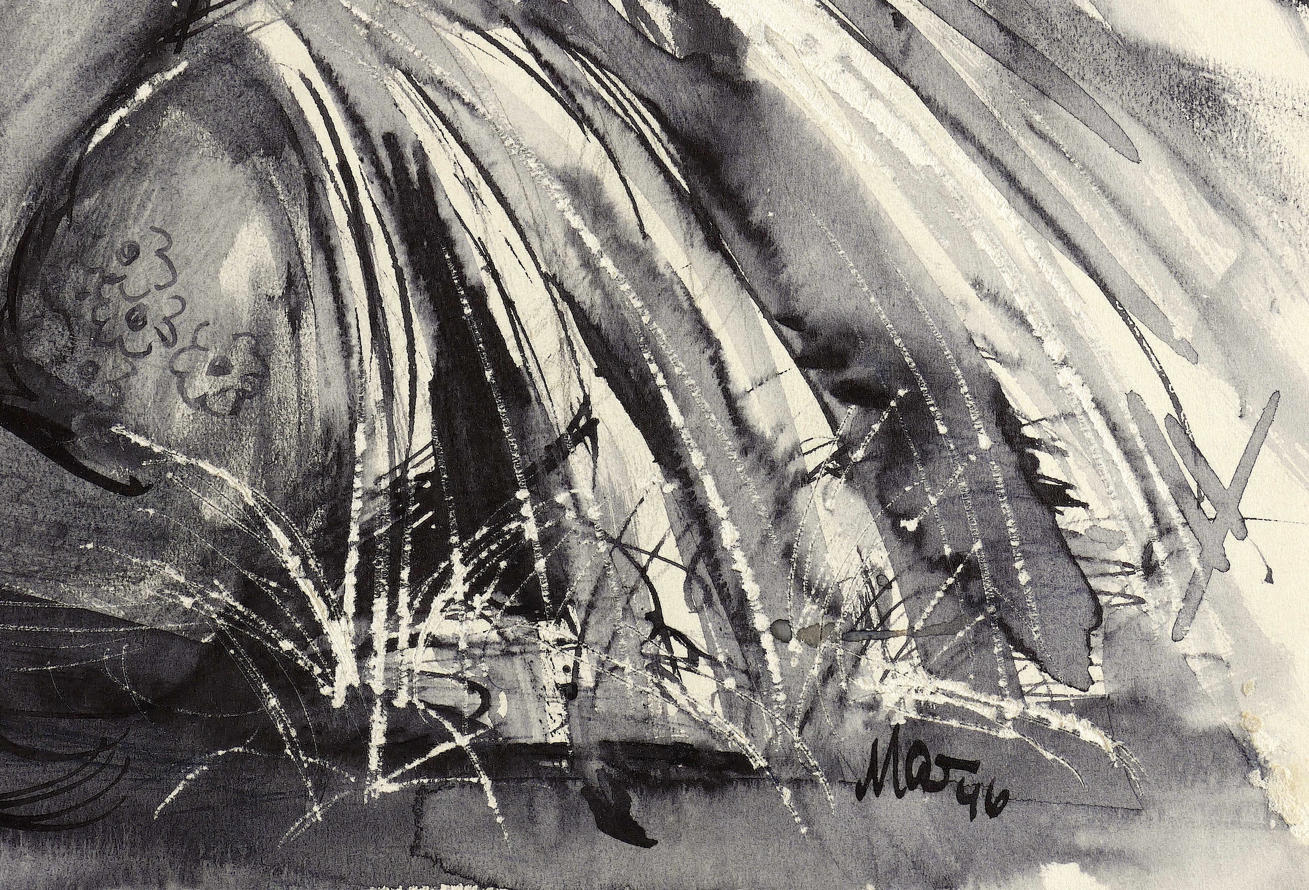 1948-1950. Gouache, auf Karton. – Originale Künstlergrafik, von Hans Mau. – Unikat. – 37,4 x 49,9 cm (Darstellung / Blatt).