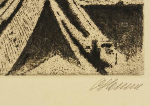 Rechts unten in Bleistift signiert. Links mit eigenhändiger Auflagenbezeichnung versehen. Am Blattrand unten in Bleistift betitelt. – Papier leicht gegilbt. Am Blattrand oben rechts stärker knickspurig. Insgesamt guter Erhaltungszustand.