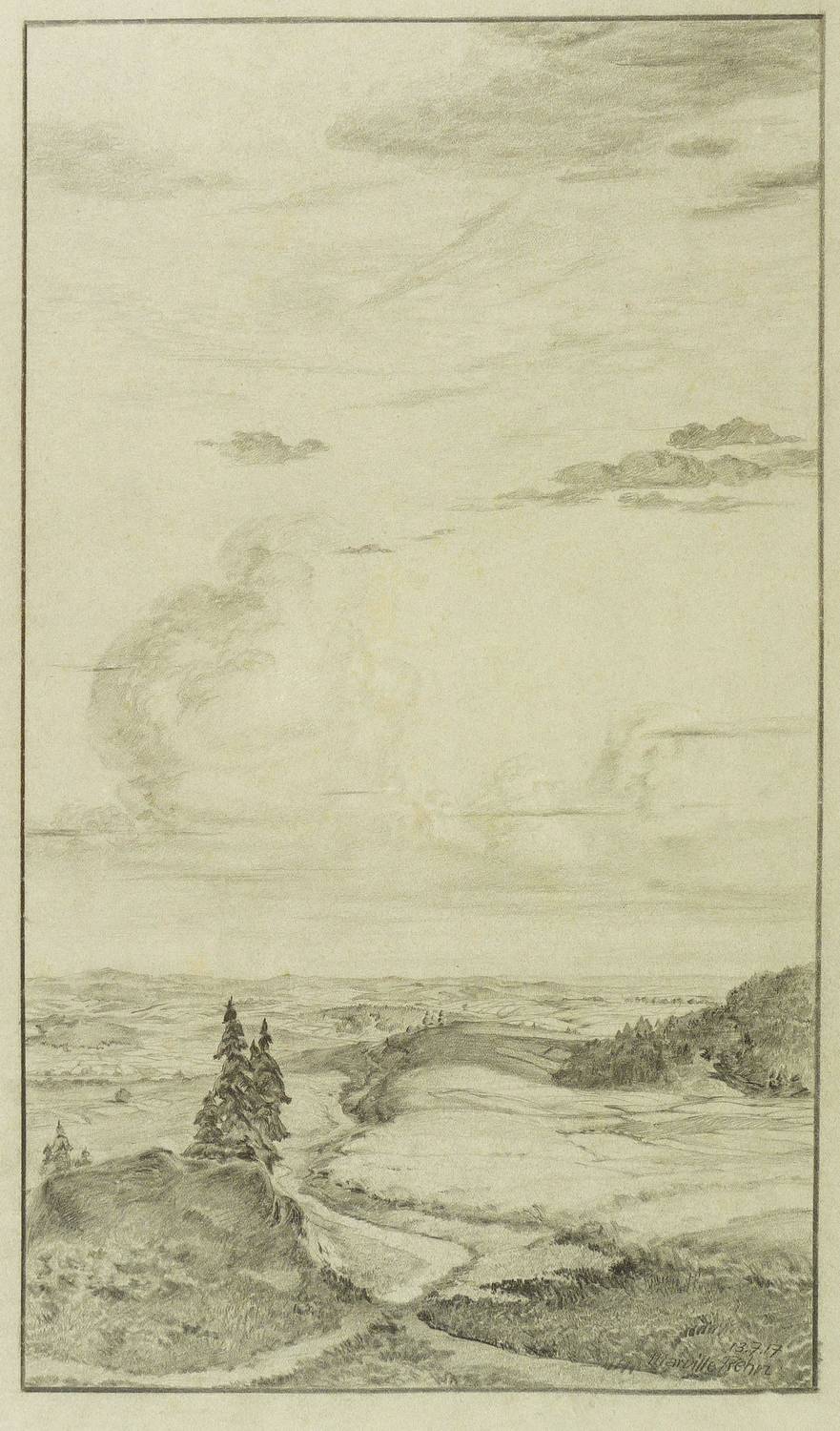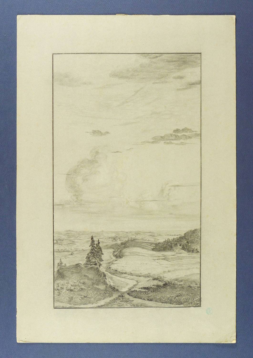 Rechs unten signiert, datiert und betitelt. Am Blattrand rechts unten Sammlerstempel EK. – Die Kanten teilweise bestoßen. Verso Reste einer ehemaligen Montierung. Noch gut bis mäßig gut erhalten.