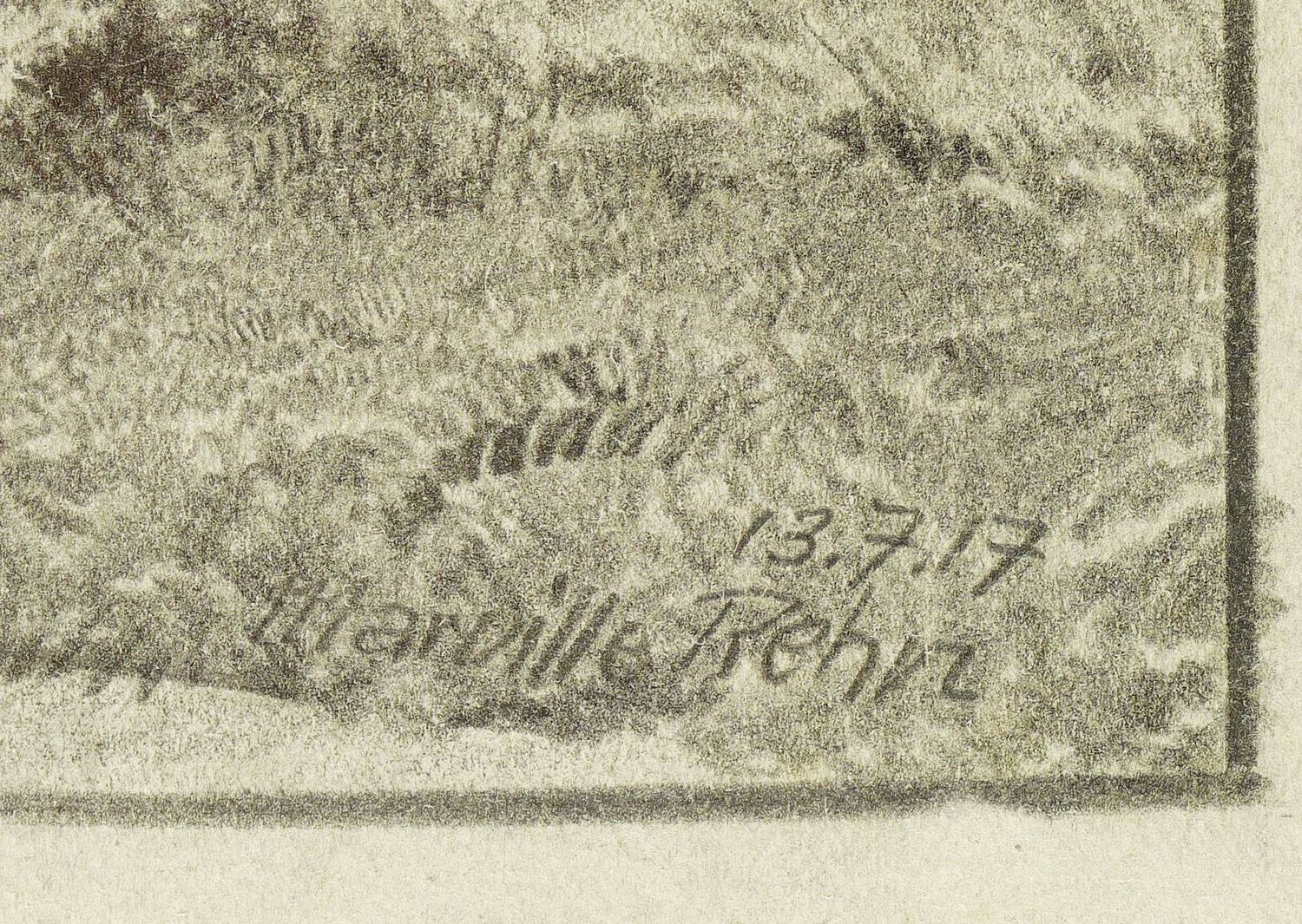 1917. Zeichnung / Bleistiftzeichnung, auf hellgrauem Karton. – Originale Künstlergrafik, von Walter Richard Rehn. – Unikat. – 37,2 x 21,7 cm (Darstellung), 48 x 33 cm (Blatt).