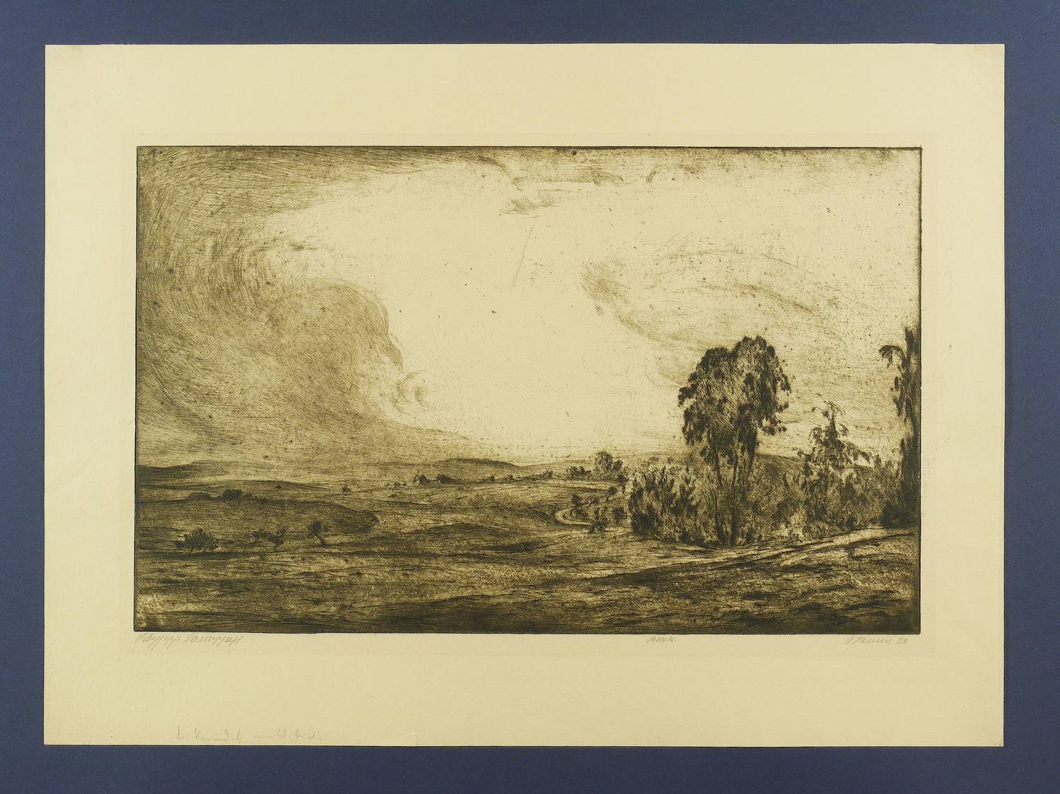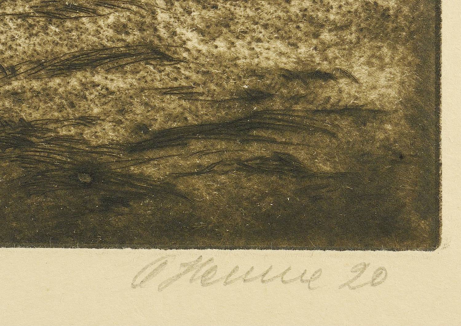 Rechts unten in Bleistift signiert und datiert. Links betitelt und mittig bezeichnet: ″Selbstdr.″ Am Blattrand links unten von fremder Hand in Bleistift bezeichnet. – Papier stärker gebräunt. Blattrand leicht angeschmutzt. Links ein größerer verso hinterlegter Einriss. Am Blattrand unten mittig ein winziger Einriss. Verso Reste einer ehemaligen Montierung. Noch gut erhaltenes Exemplar.