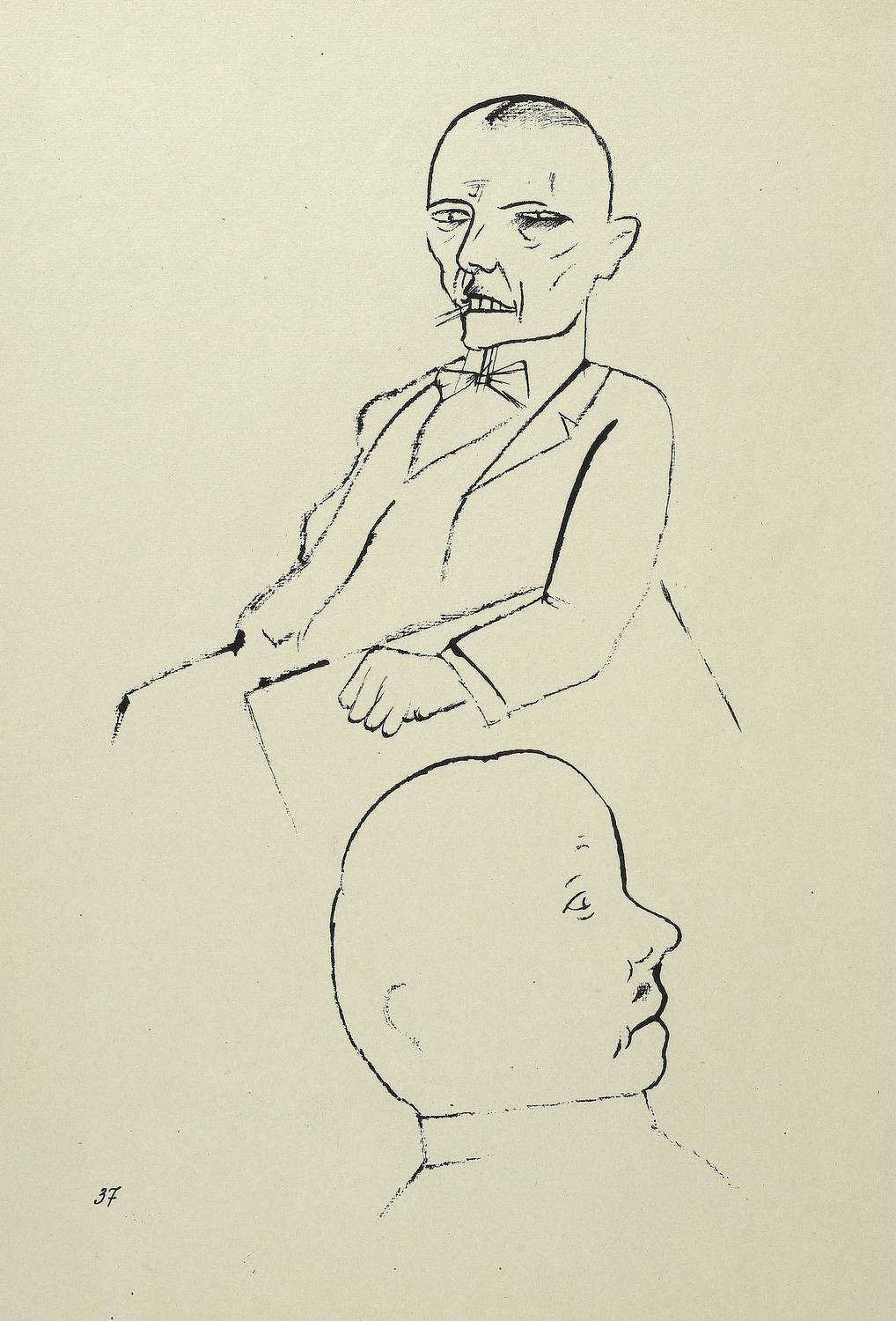 1923. Lithografie / Fotolithografie, in Schwarz, auf gelblichem Maschinenpapier. – Originale Künstlergrafik, von George Grosz. – 25,0 x 35,0 cm (Darstellung / Blatt).