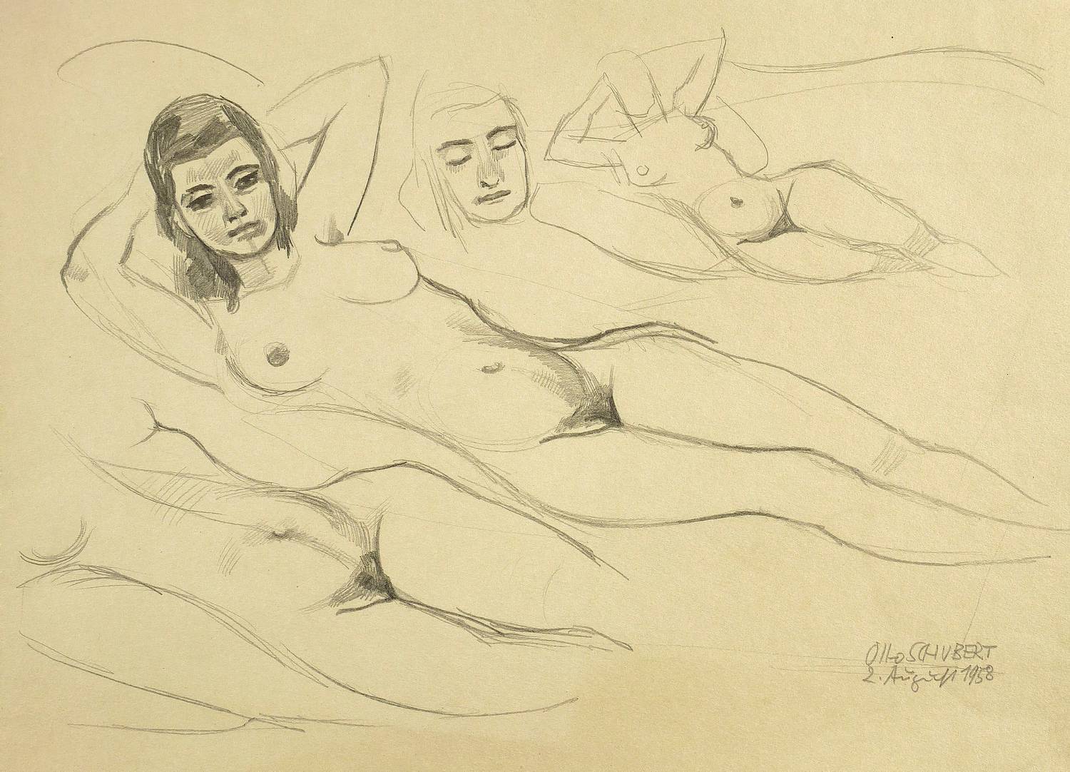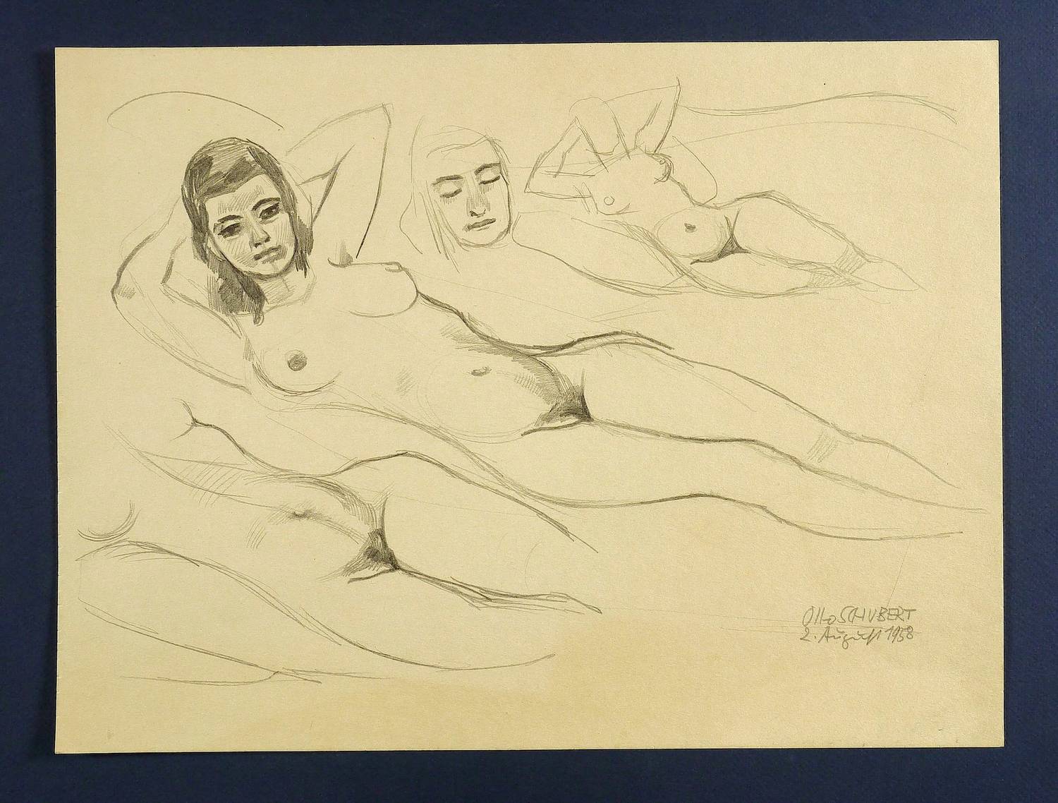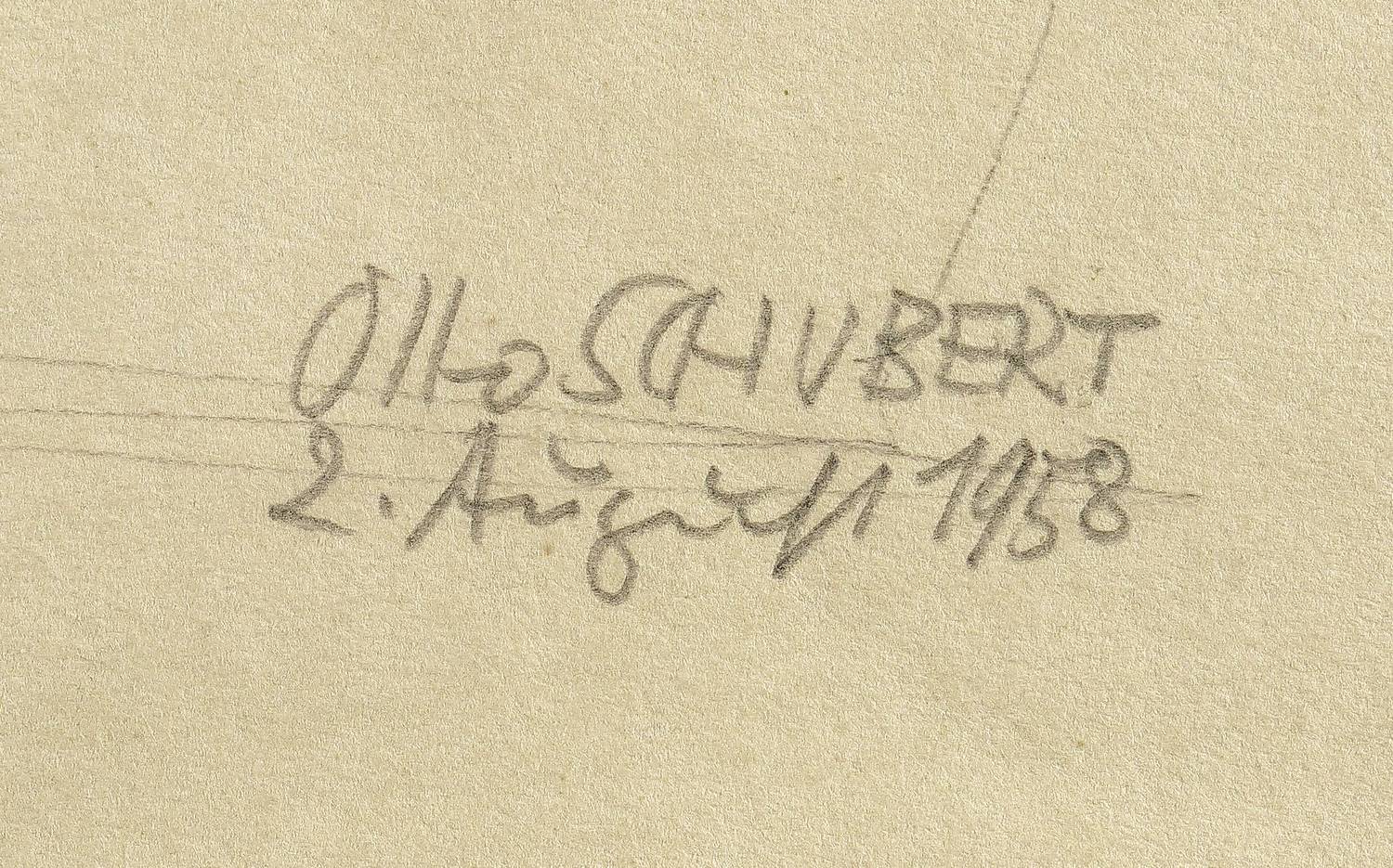 Rechts unten signiert und datiert: ″Otto SCHUBERT / 2. August 1958″. – Papier stärker gebräunt. Guter Gesamtzustand.