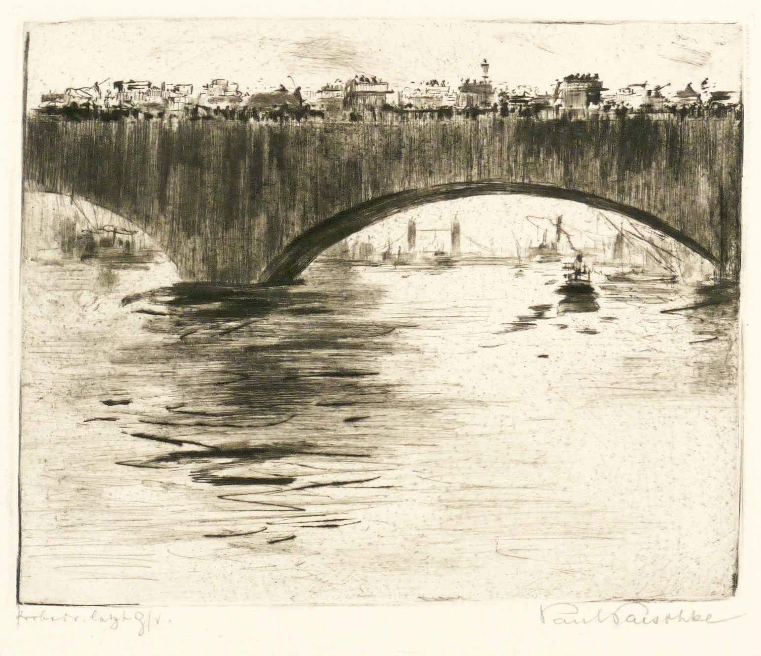 Rechts unten in Bleistift signiert. – Hinter dem rechten Brückenbpgen der Londen Bridge eröffnet sich der Ausblick auf die Tower Bridge. – Hervorragender Zustand. Sehr gut erhalten.