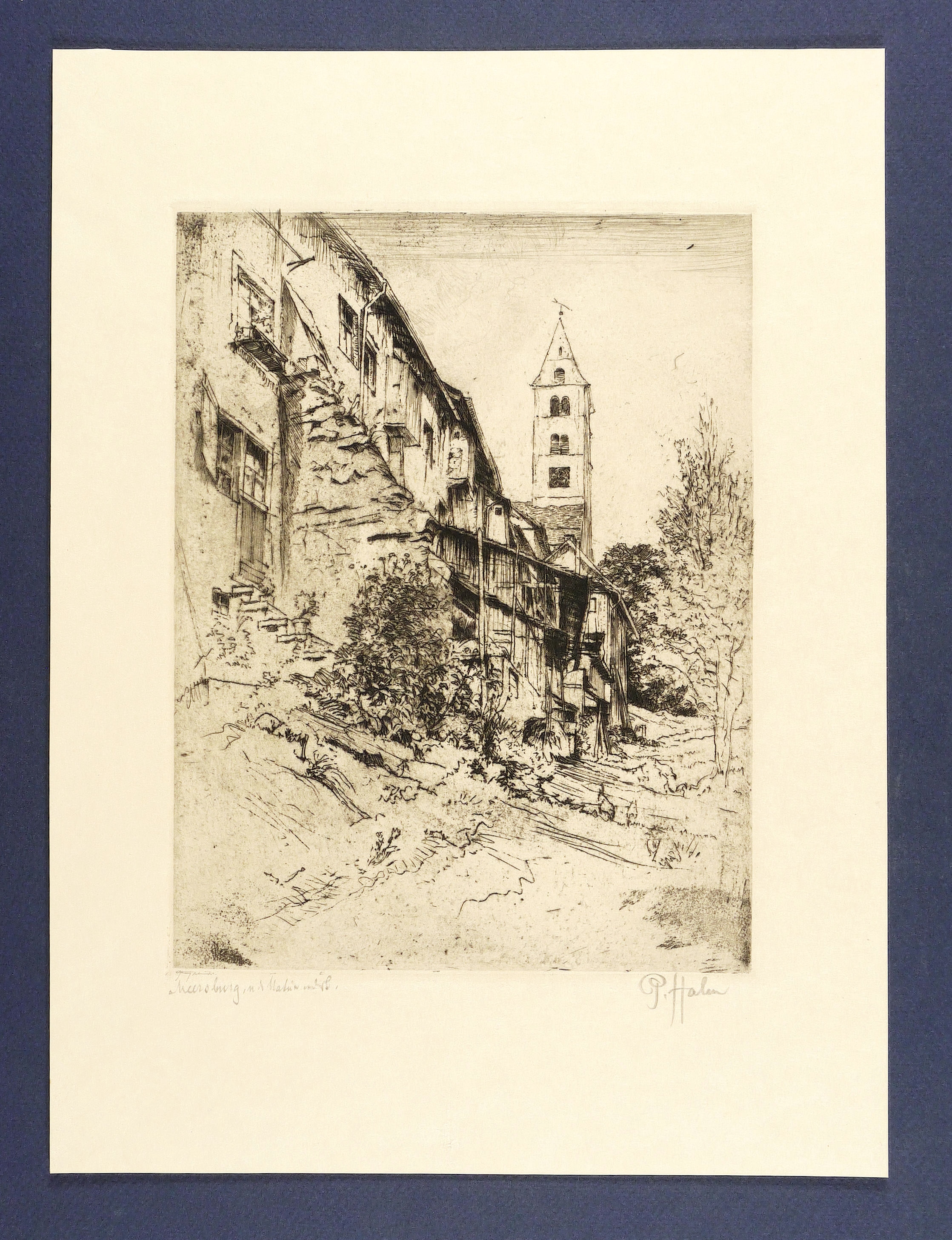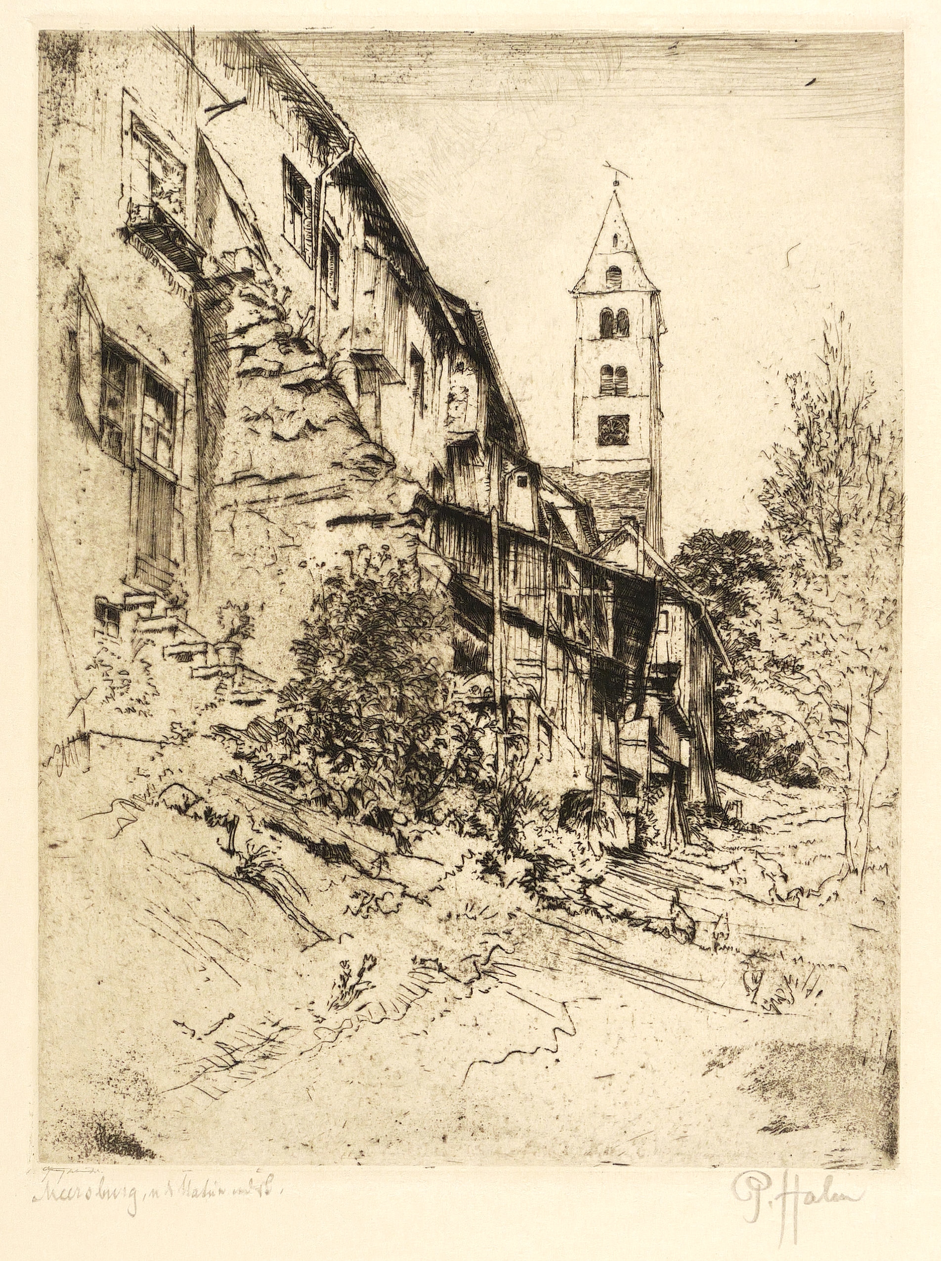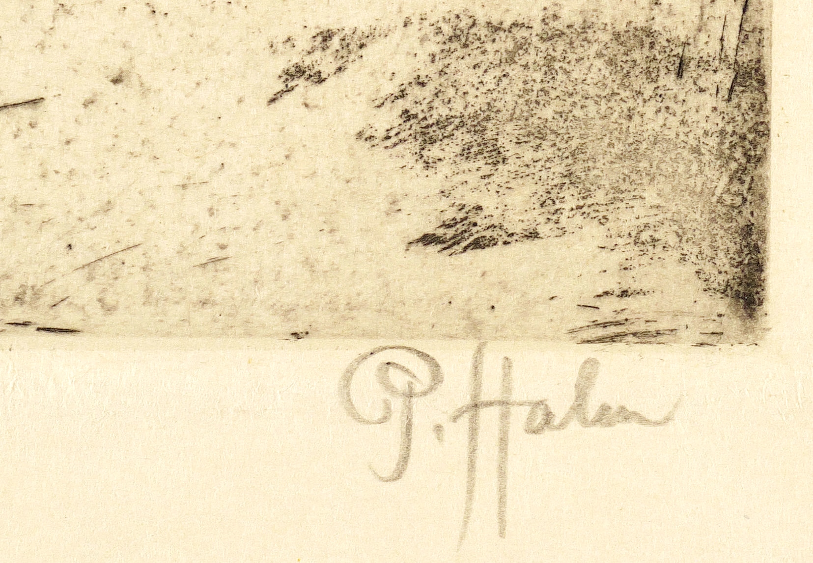 Um 1910. Radierung / Strichätzung & Kaltnadel, mit Plattenton, auf festem hellgelbem Japan. – Originale Künstlergrafik, von Peter Halm. – 22,9 x 17,4 cm (Darstellung / Platte), 34 x 25 cm (Blatt).