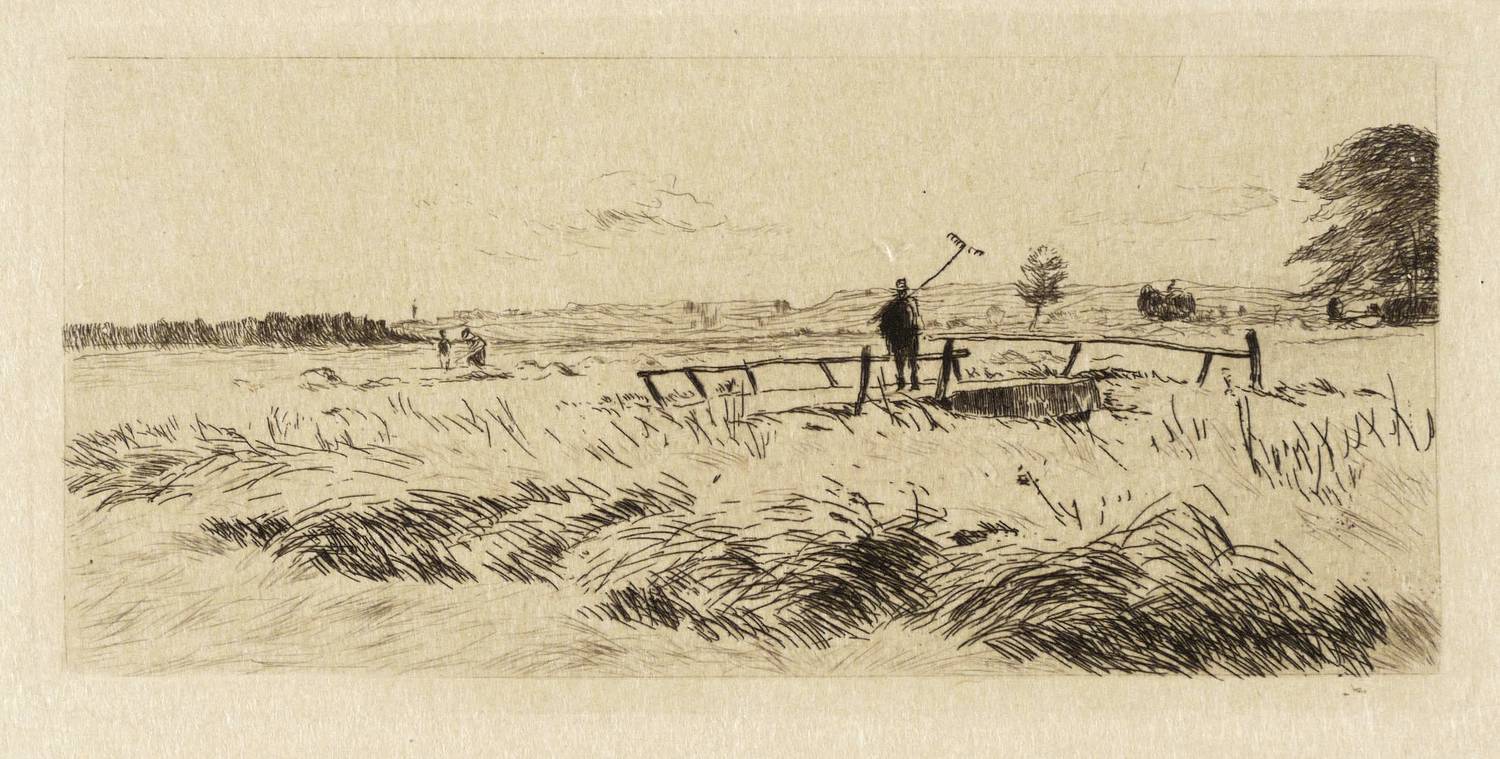 1896. Radierung / Strichätzung & Kaltnadel, in Schwarz, auf gelbem Japanbütten. – Originale Künstlergrafik, von Sion Longley Wenban. – 7,2 x 16,1 cm (Darstellung), 8,2 x 16,9 cm (Platte), 39,5 x 24 cm (Blatt).
