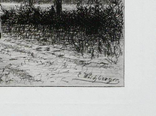 Aus: Radirungen. Hrsg. vom Radirverein zu Weimar (Weimar: Gesellschaft für Radirkunst 1877-1914). – In der Platte rechts unten signiert: ″E. Weichberger″. – Blatt Nr. 13 der Jahresgabe von 1883 des Weimarer Radiervereins. – Blattrand leicht angeschmutzt. Sonst gut erhalten.