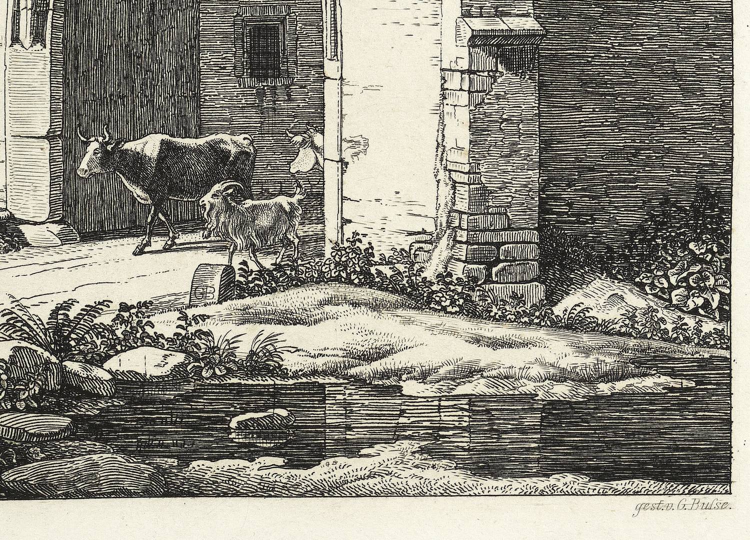 Georg Heinrich Busse (1810 Bennemühlen - 1868 Hannover). Deutscher Maler und Kupferstecher. Studierte Kupferstich bei Christian Friedrich Stoelzel in Dresden. Bereiste 1833-44 Italien und brachte 1839-46 die drei Hefte "Malerische Radirungen verschiedener Gegenden Italiens" heraus. Danach als Bibliotheks-Kupferstecher in Hannover angestellt. 1857/58 Studienreise nach Paris, Algier, Malta und Italien.