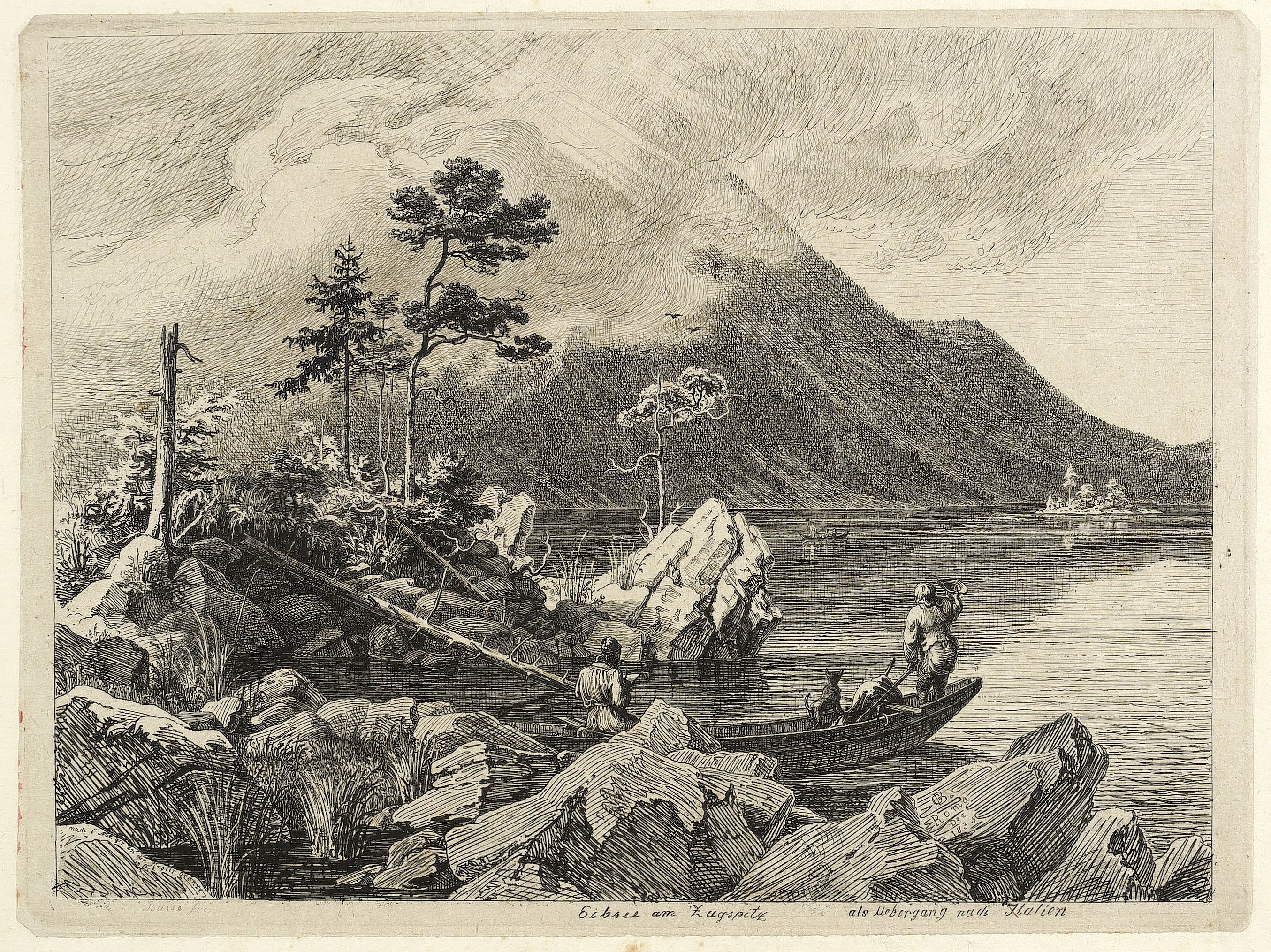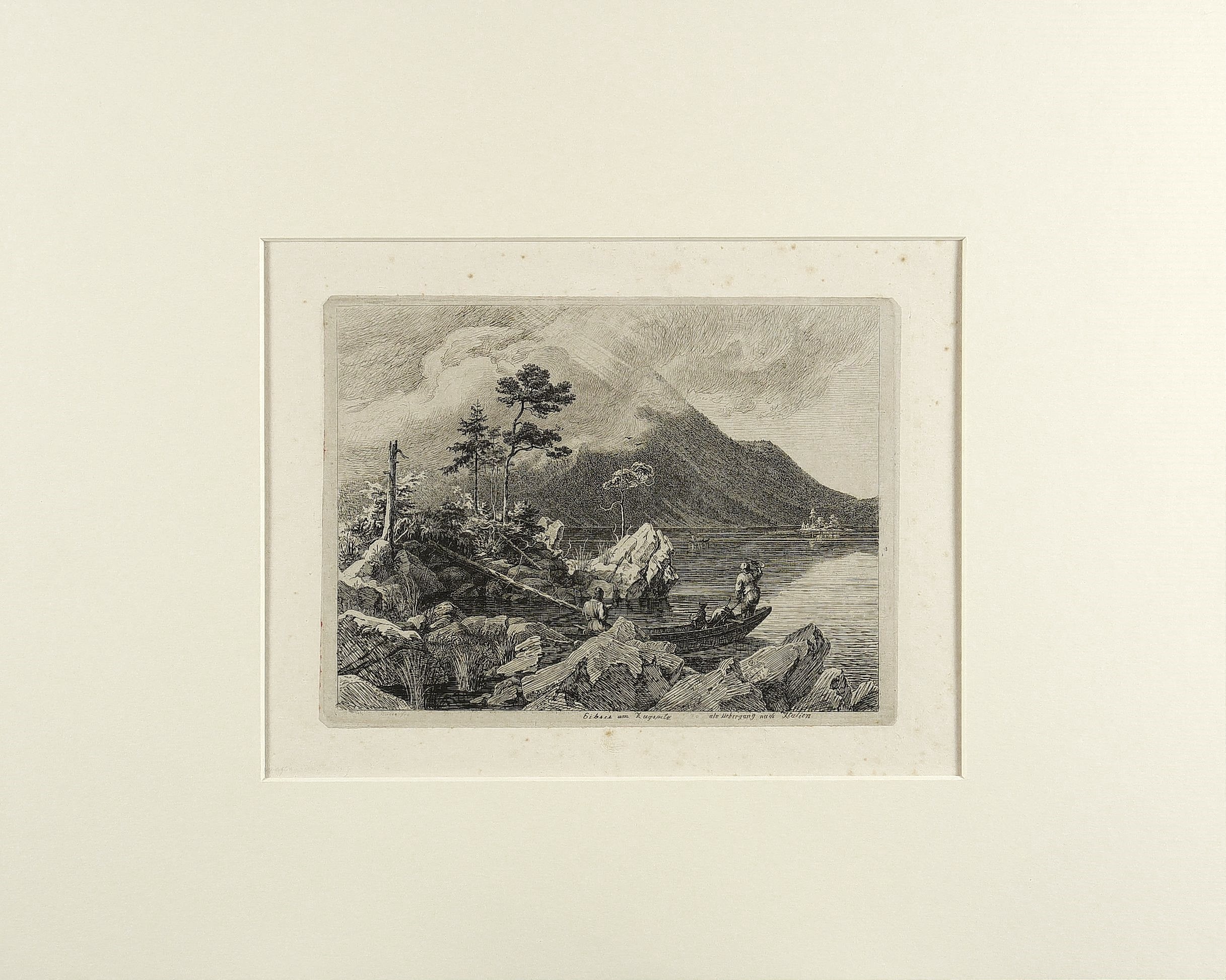 Andresen 23. – Im Stein vor dem Boot monogrammiert und datiert: ″CB. Roma Dec 1835″. In der Platte links unten signiert: ″Busse fec.″ Mittig betitelt. – Im breiten Rand leicht stockfleckig. Insgesamt aber guter unrestaurierter Zustand. Fachgerecht im Passepartout montiert.