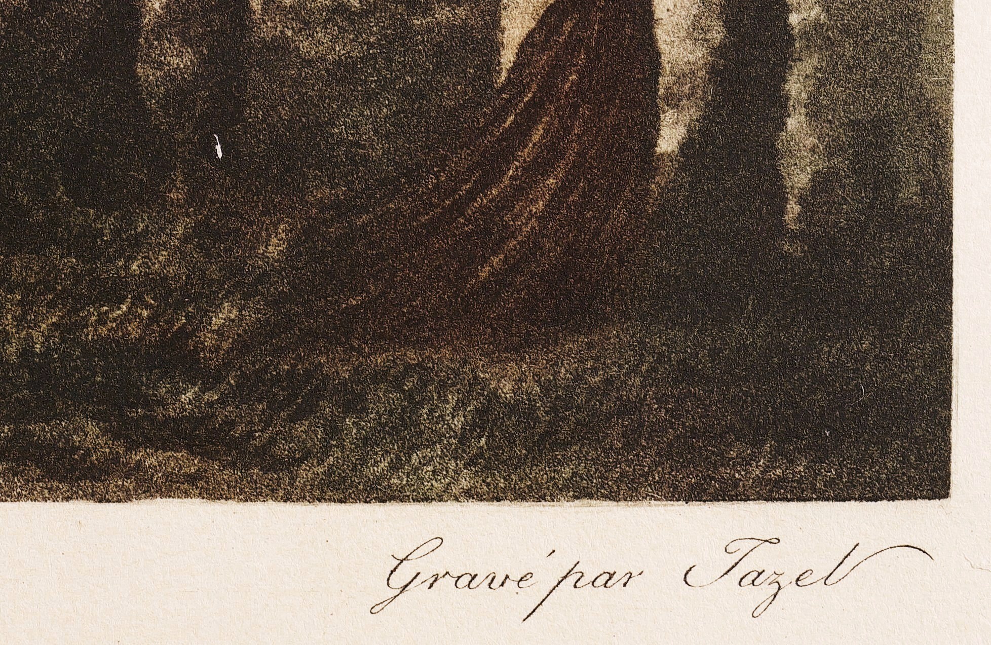 In der Platte rechts unten signiert: "Grave par Jazet". – Ausgesprochen schönes Blatt. – Papier geringfügig knickspurig. Insgesamt gut erhalten und von schöner Gesamtwirkung.