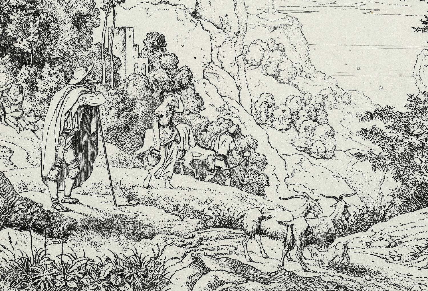 1828. Radierung / Strichätzung. – Originale Künstlergrafik, von Adrian Ludwig Richter. – 17,8 x 24,8 cm (Darstellung), 23,2 x 28,0 cm (Platte), 32,5 x 39,0 cm (Blatt).
