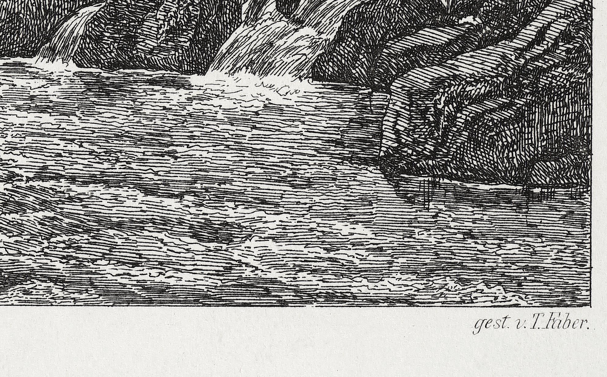 Kovalevski B-C 8. – In der Platte unten rechts signiert: ″gest. v. T. Faber″. Darunter betitelt und bezeichnet ″Angekauft vom Sächs. Kunstvereine und bey der Verloosung 1828 gewonnen von Herrn Grafen Baudisin zu Dresden auf No. 121.″ – Originalrandiges Blatt, marginal fleckig und angeschmutzt. Insgesamt sehr guter Erhaltungszustand.