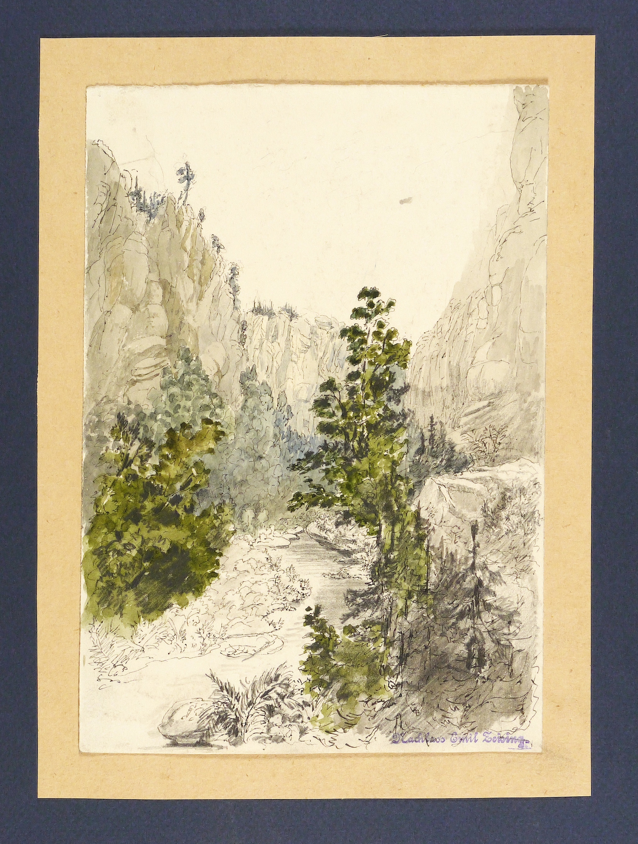 Um 1880. Zeichnung / Federzeichnung & Aquarell, in schwarzer Tusche, laviert & aquarelliert, auf gelblichem Velin. – Originale Künstlergrafik, von Franz Emil Zeising. – Unikat. – 20,1 x 13,9 cm (Blatt), 23 x 16,5 cm (Trägerkarton).