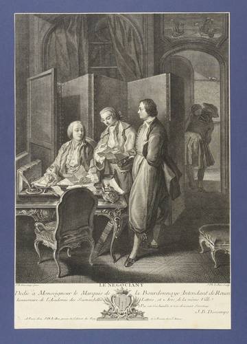 Jean Baptiste Descamps d.Ä. (1706 Dünkirchen - 1791 Rouen). Französicher Maler und Kunstschriftsteller. Schüler von Pierre d' Ulin und Nicolas de Largillière in Paris. Gründete 1740 in Rouen eine "Ecole gratuite de Peinture et Dessin". 1749 leitet er die Festlichkeiten anläßlich einer Reise des Königs nach le Havre. Seit 1764 Mitglied der Académie Royale. Wirkte in Rouen bei der Ausgestaltung mehrerer öffentlicher Gebäude mit.
