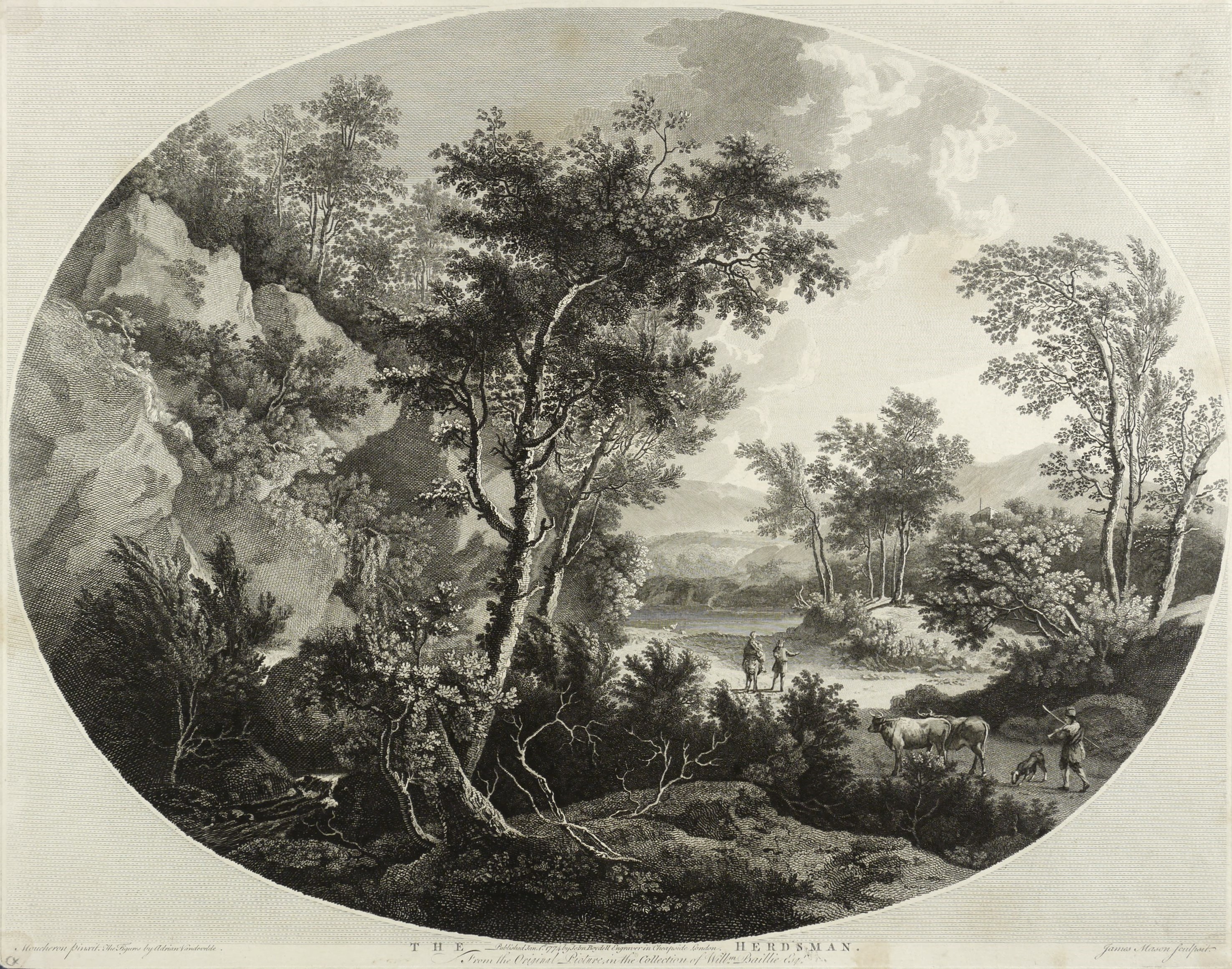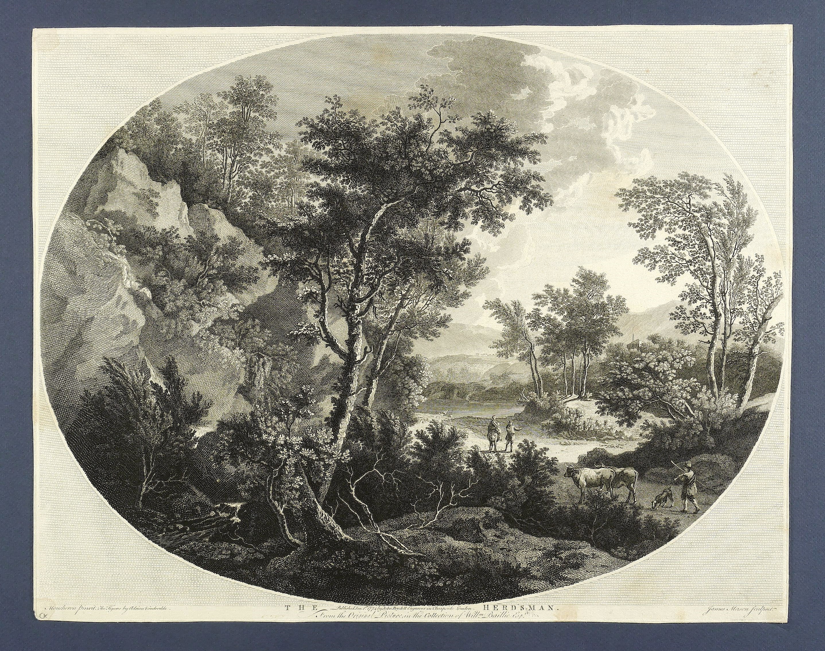 In der Platte rechts unten signiert: ″James Mason sculpsit.″ Unterhalb der Darstellung betitelt und bezeichnet: ″From the Original Picture in the Collection of Will.m Baillie Esq.r″. Verlegeradresse von John Boydell in London. – Blatt bis knapp an den Plattenrand beschnitten. Partiell schwach fleckig. Verso Reste vormaliger Montierung. Insgesamt mäßig guter Erhaltungszustand.